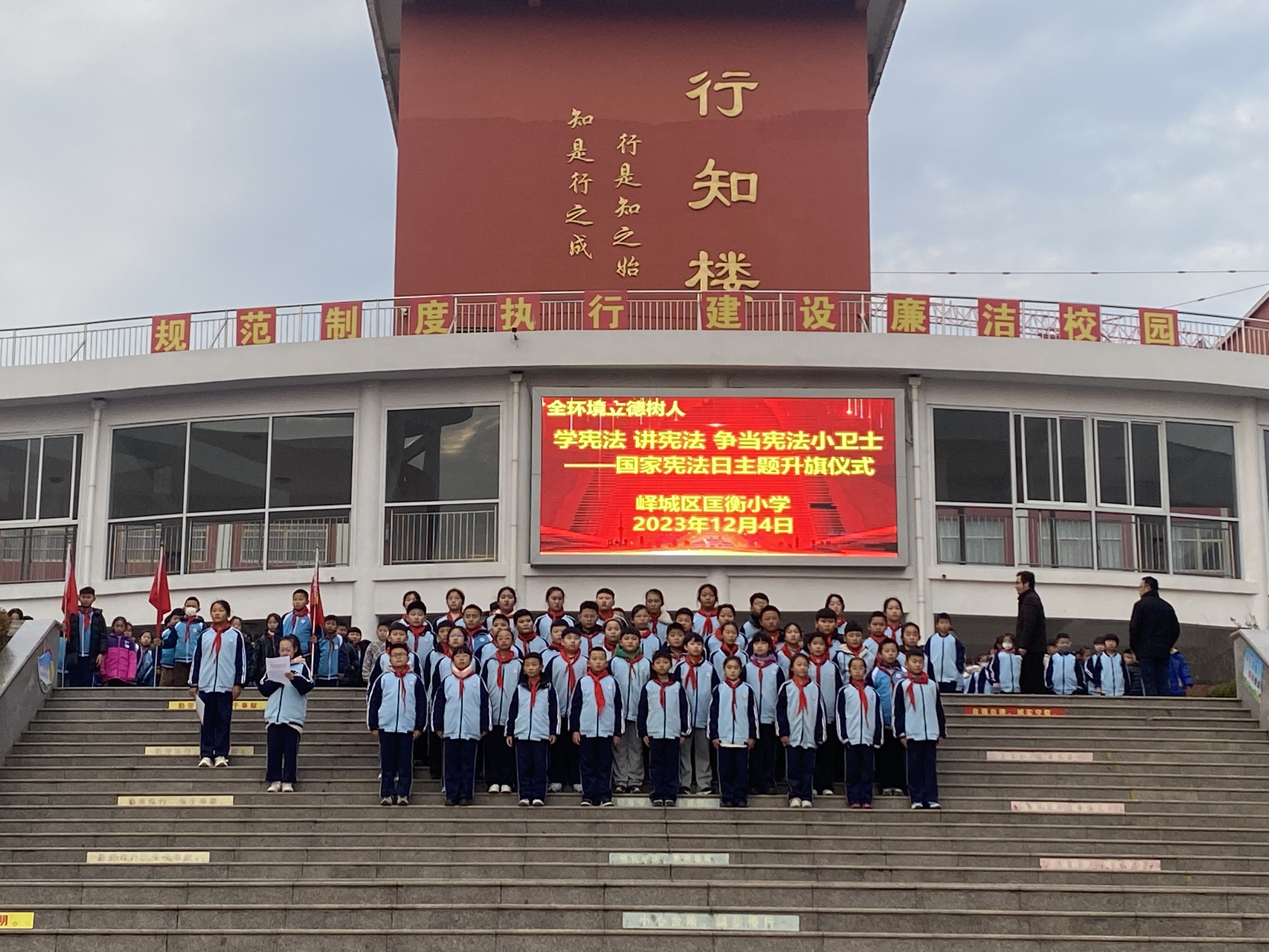 今天是我国第十个“国家宪法日”,为进一步普及宪法知识,弘扬宪法精神,使“尊崇宪法、学习宪法、遵守宪法、维护宪法、运用宪法”的观念深入师生心中,峄城区匡衡小学举行了以“学宪法 讲宪法 争做宪法小卫士”为主题的升旗仪式。
