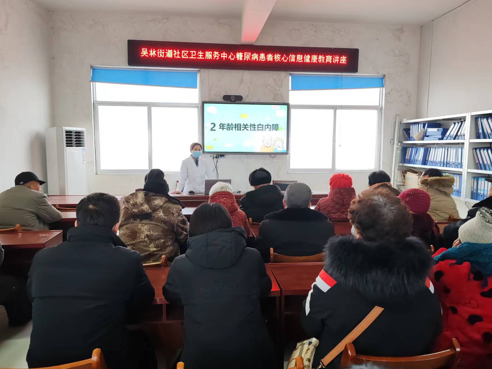 为提高辖区“糖友”对糖尿病眼病的防治意识,1月13日上午,峄城区吴林街道社区卫生服务中心在肖桥院区开展了糖尿病眼病科普知识讲座。