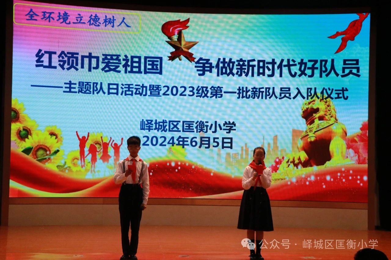 根据“全童分批入队”工作要求,为引导、激励广大少先队员继承和发扬少先队的光荣传统,增强光荣感和使命感,6月5日,峄城区匡衡小学隆重举行“红领巾爱祖国 争做新时代好队员”主题队日活动暨峄城区匡衡小学2023级第一批新队员入队仪式。