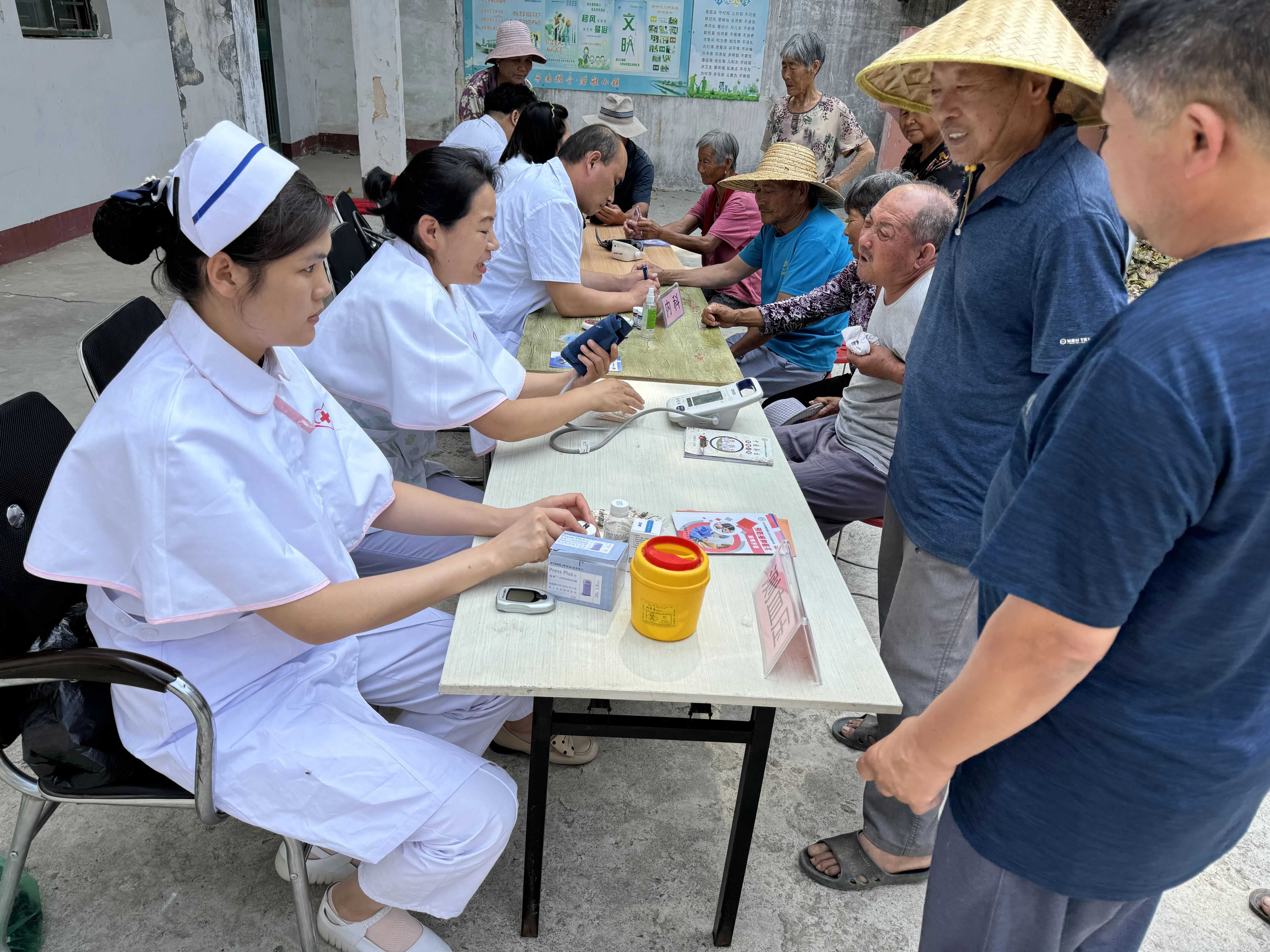 活动现场,志愿服务队员们为村民健康体检,检测血糖、血压,内科、外科、治未病科等医务人员认真询问村民的既往病史、病情,细致地解答他们提出的各种健康问题,并发放健康科普宣传手册,为他们普及疾病预防知识和突发疾病的救治方法,切实提高村民的健康防病意识。