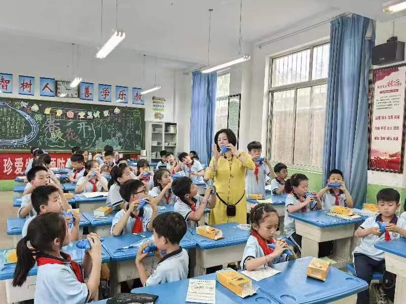 学校为每位孩子配备了陶笛,对音乐教师进行了专业培训。学校利用每周一学生进校后的时间,全体音乐教师走进每个班级对孩子们进行吹奏陶笛指导。将陶笛教学带进小学音乐课堂,不仅丰富了艺术教育内容,更有助于弘扬中华民族的优秀传统文化,提升学生的人文素养。