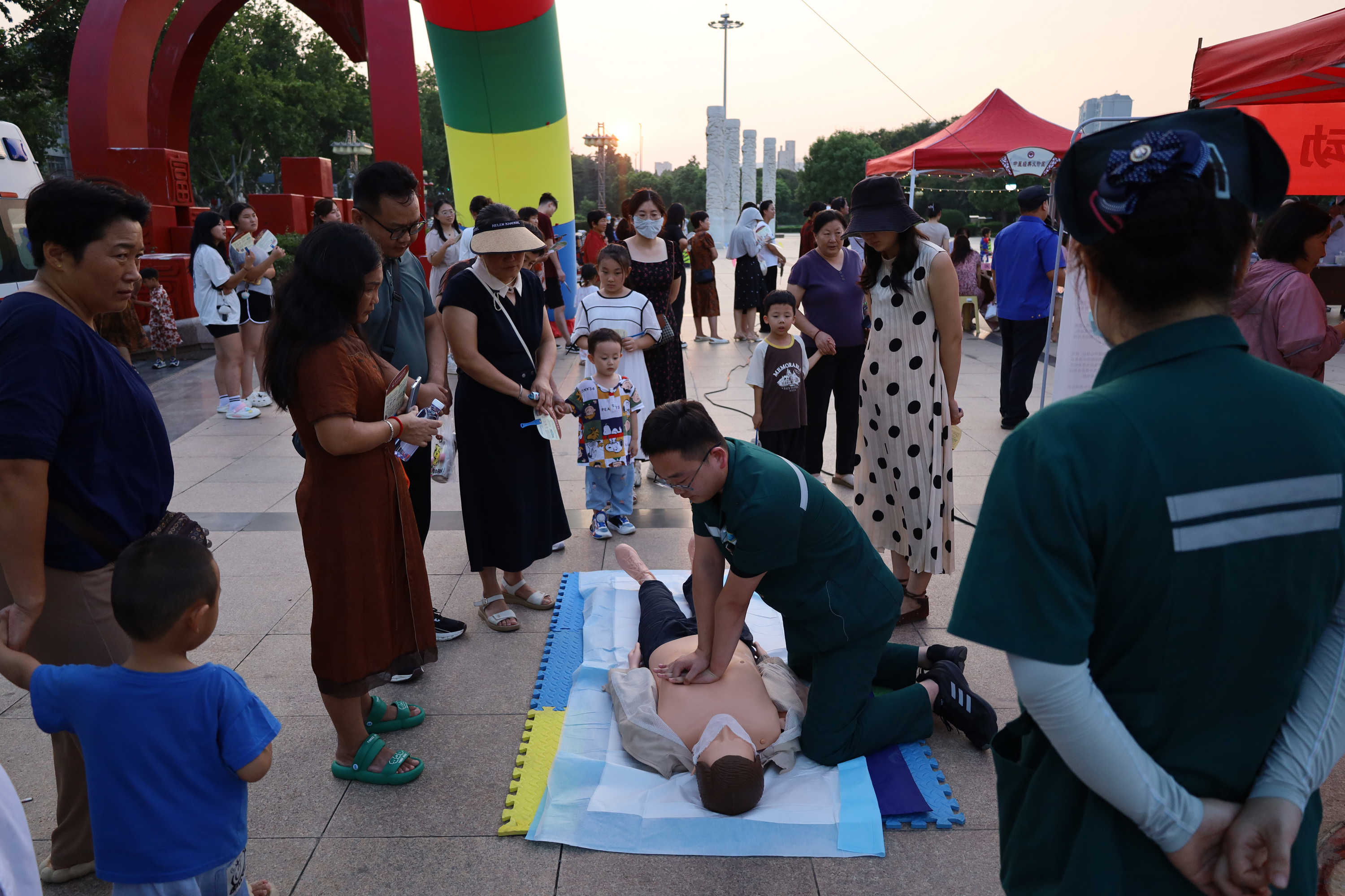 8月21日晚,峄城区“健康夜市”活动在仙坛苑广场举办,区卫生健康局组织区人民医院、区中医院、区疾控中心、区妇计中心等医疗机构专家团队,为群众现场免费提供健康咨询和义诊服务。