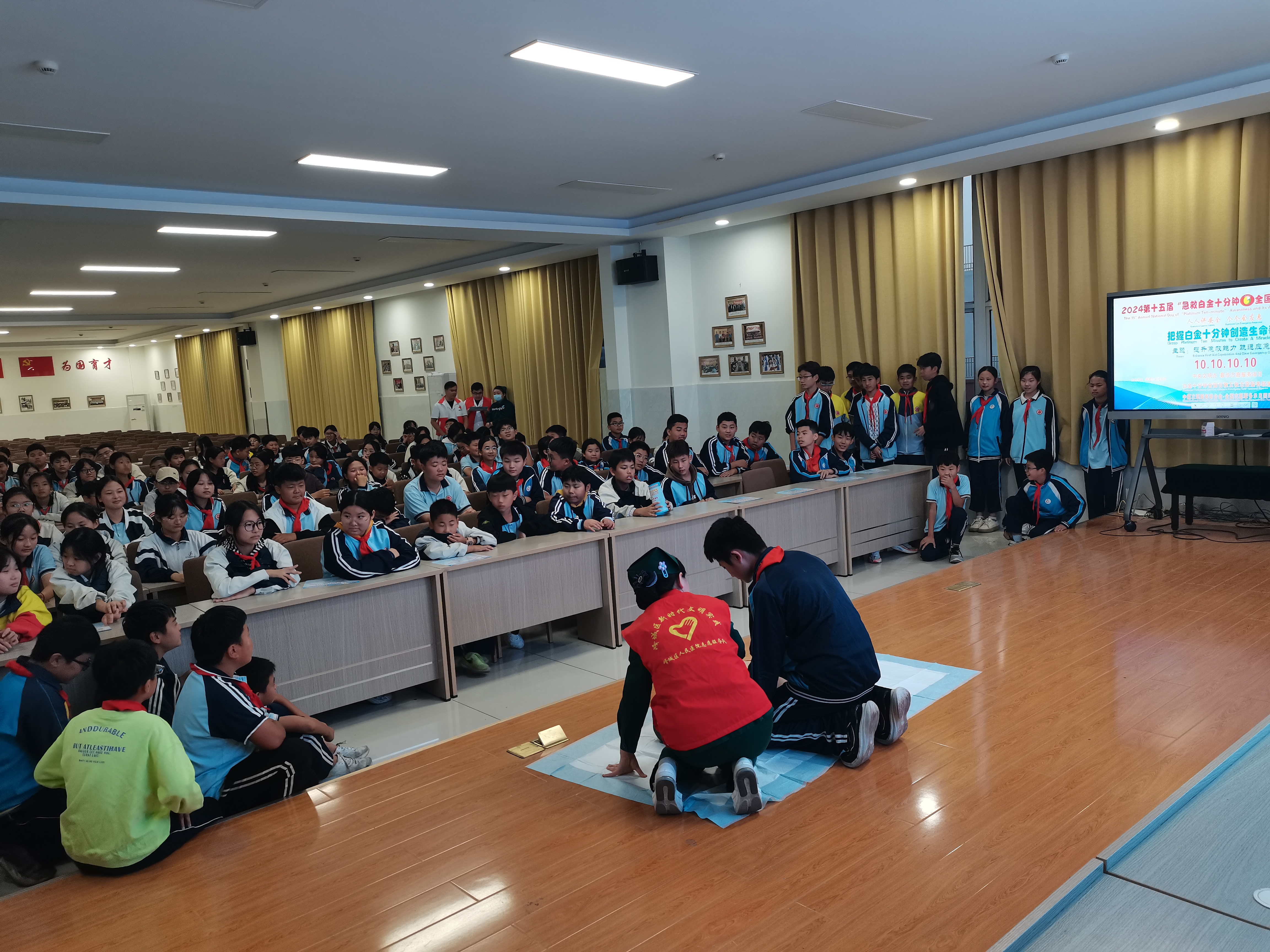 2024年10月10日是第十五届“白金十分钟全国自救互救日”。以“秋风暖意送硕果,急救爱心进课堂”为主题,峄城区人民医院“应急救护名师”工作室走进荀子学校,对全体师生开展了急救知识普及实操活动。