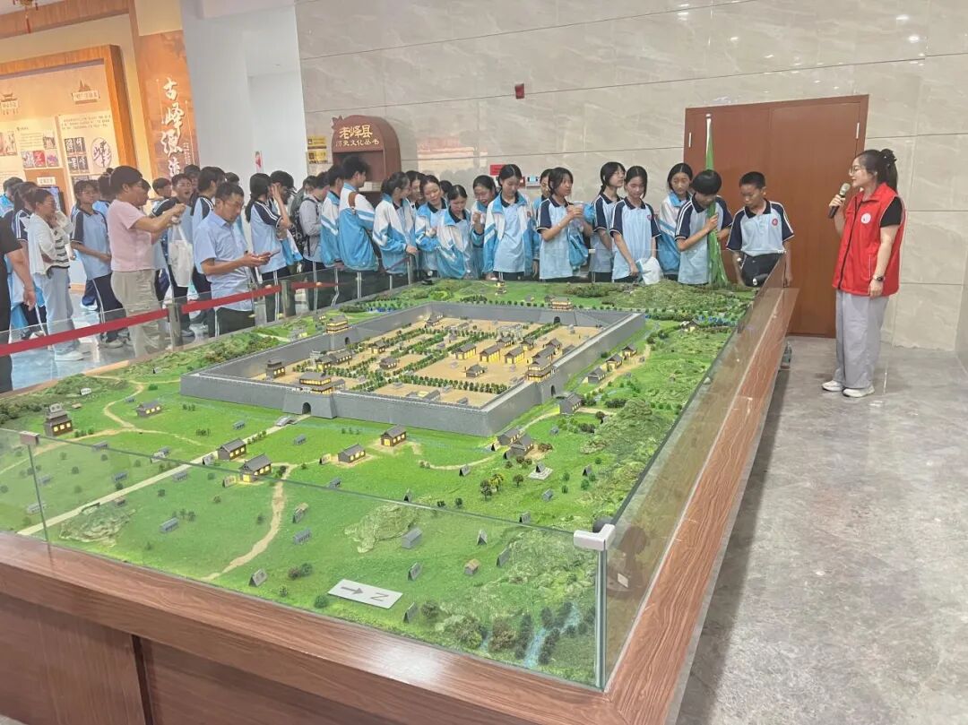 步入民俗馆,生动的民俗场景复原令人眼前一亮,独轮车、铁犁等传统农具与婚嫁礼仪全息投影场景吸引了学生们的驻足;民间游艺区,男生们围着展柜研究洋火枪、陀螺与弹弓的构造。走进峄城博物馆展厅,铜镜、陶器、青铜器等一件件文物静静陈列,讲解员以“一件文物一个故事”的方式,从红土埠文化的古老滥觞,到邢店遗址、二疏城遗址、岳城故城的枝繁叶茂,再到承县、峄州、峄县的历史积淀,一步步还原了峄城7000多年的繁华过往。
