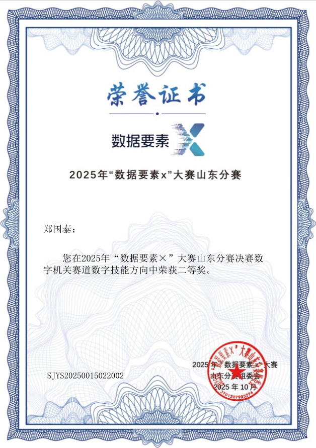 近日,2025年“数据要素x”大赛山东分赛决赛传捷报:峄城区中医院信息科主任郑国泰,在“数字机关赛道・数字技能方向”斩获省级二等奖!
