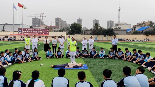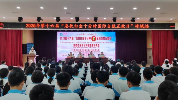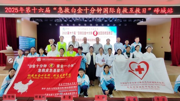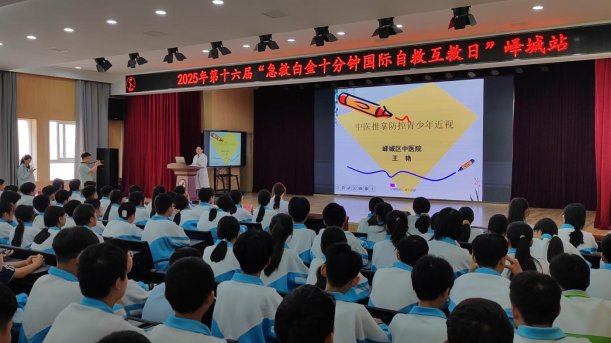 10月10日上午,峄城区中医院在枣庄市第二十八中学举办2025年第十六届“急救白金十分钟 全国自救互救日”公益活动。