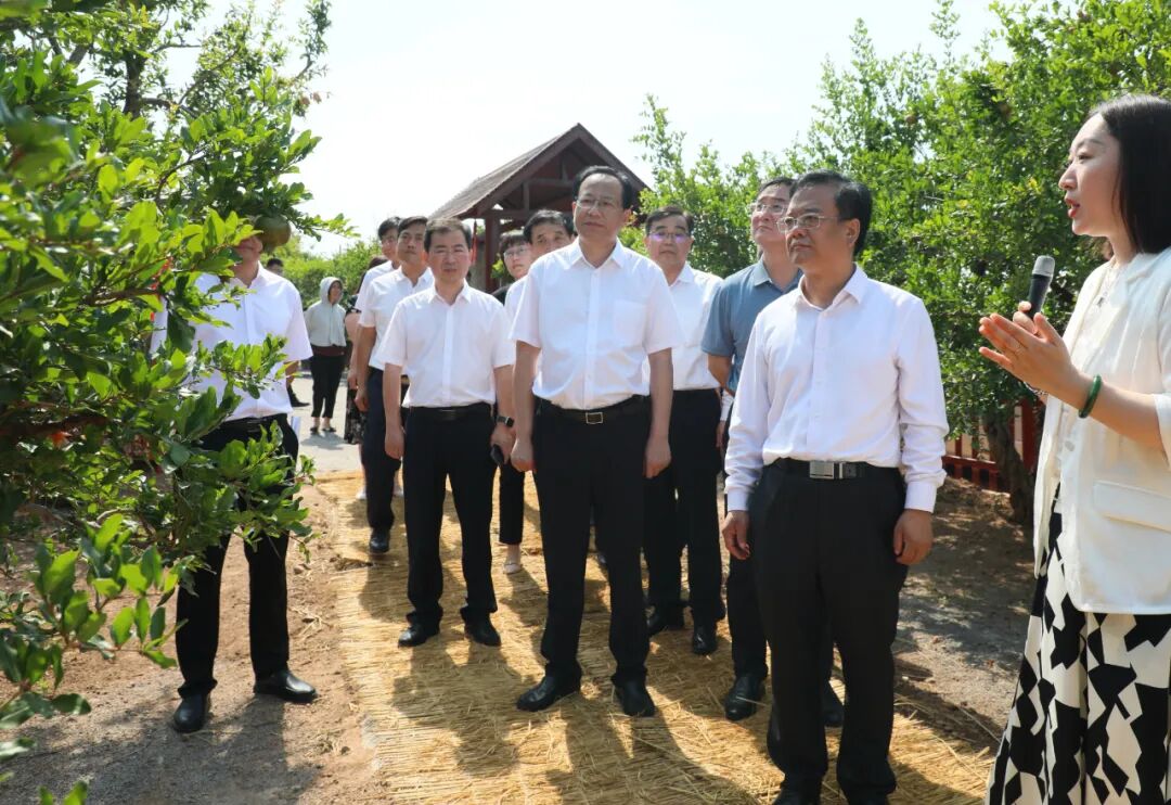 6月26日,山东省农业科学院党委书记梁金光一行来我区调研石榴产业发展现状及科技需求情况,并就做好科技支撑石榴产业高质量发展工作进行座谈交流。市委常委、副市长张庆伟,区委书记张熙滨,区委常委、办公室主任李天正及市、区相关部门负责同志参加活动。