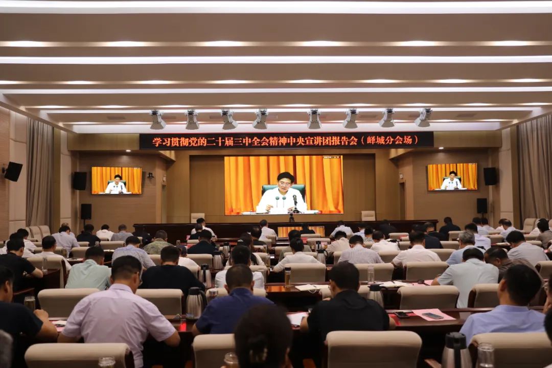 按照党中央统一部署,7月29日上午,学习贯彻党的二十届三中全会精神中央宣讲团报告会在济南举行,山东省领导干部党的二十届三中全会精神专题学习班同时开班。中央宣讲团成员、生态环境部党组书记孙金龙作宣讲报告。我区在峄城分会场组织收听收看了会议实况。