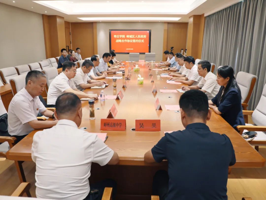 9月6日,峄城区人民政府与枣庄学院战略合作协议签约仪式在区政府会议室举行。枣庄学院党委书记高峰、区委书记张熙滨分别致辞并见证签约。区委副书记、政法委书记宋俊峰主持签约仪式,枣庄学院党委委员、副校长李目海,副区长张文信参加。