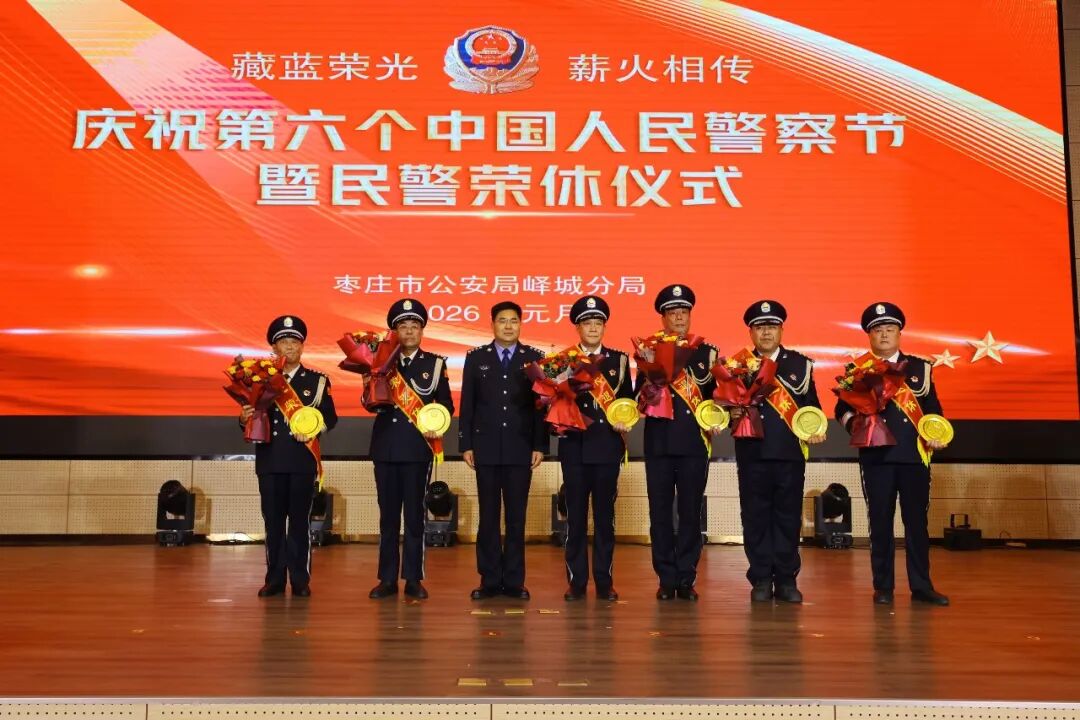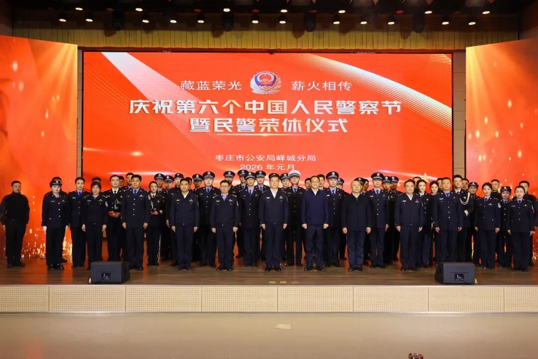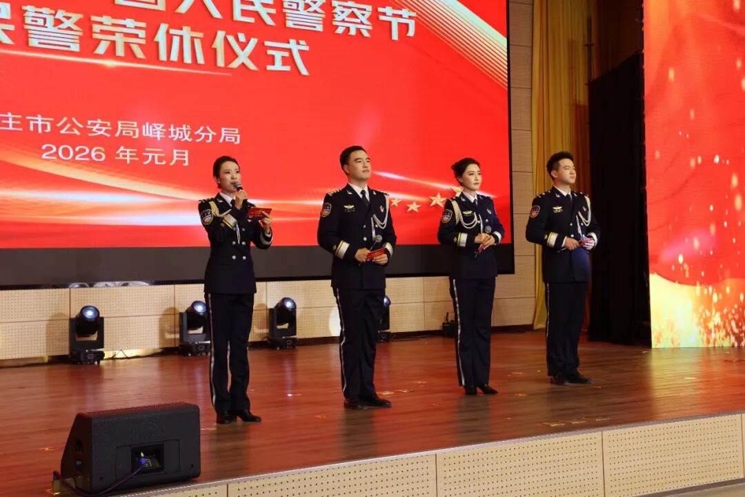 仪式在刚劲有力的警体操《向节日致敬》中拉开帷幕,飒爽的姿态展现了公安队伍的昂扬风貌。活动以“使命与担当”“忠诚与荣光”“传承与弘扬”三大篇章为主线,歌曲婉转诉说从警初心,诗朗诵深情回望峥嵘岁月,情景剧再现执法为民场景,相声幽默展现基层派出所日常,多元文艺形式立体呈现了峄城公安的忠诚底色与为民情怀,赢得阵阵掌声。