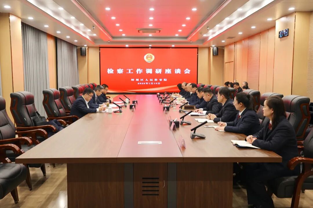 杨红光一行先后参观了区人民检察院全过程人民民主司法实践中心、检察服务中心、未成年人保护专区、数字检察中心等功能区域,现场察看平台建设与运行情况,详细了解相关工作机制及成效。随后召开座谈会,听取峄城区检察院2025年工作开展情况汇报,并就下一步工作提出指导意见。