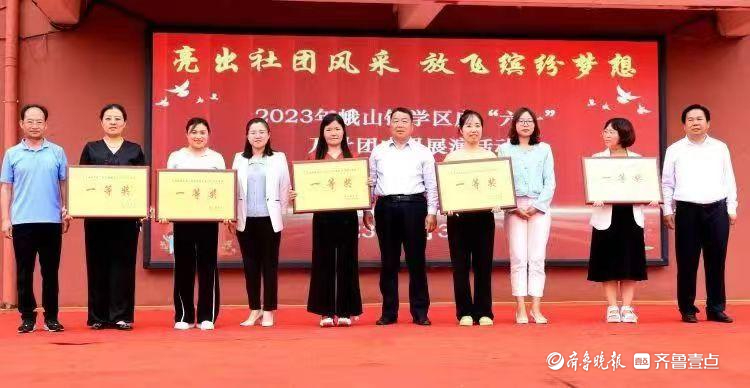 5月30日上午,枣庄市峄城区峨山镇学区举行“亮出社团风采、放飞缤纷梦想”庆六一暨社团成果展演活动。峄城区教体局秦剑主任、峨山镇政府副镇长周双双、峨山镇人大副主席赵正富、市妇联挂职干部李丽、爱心企业家孙中会经理、峨山镇学区主任孙启武等出席活动。