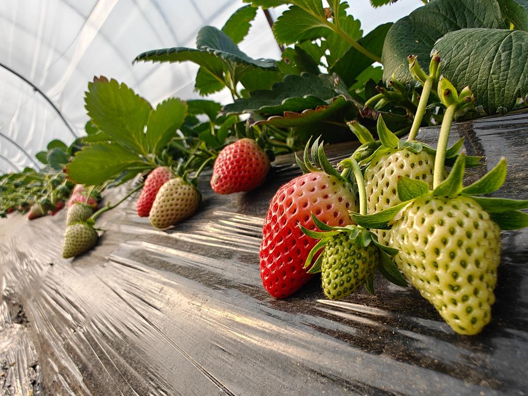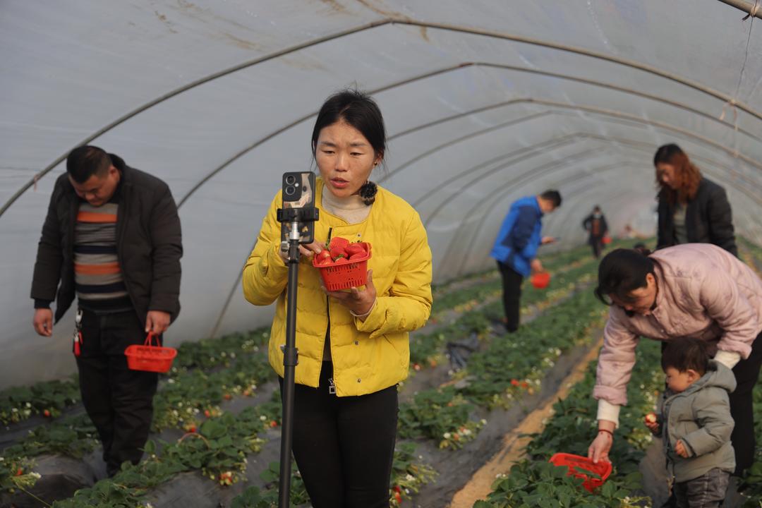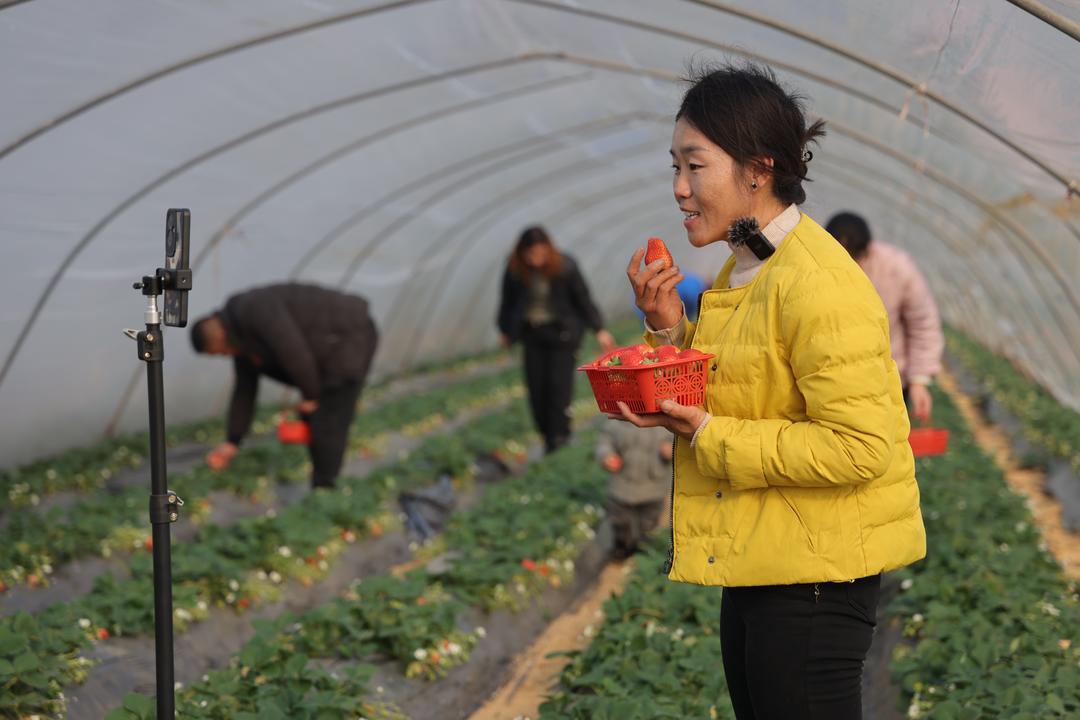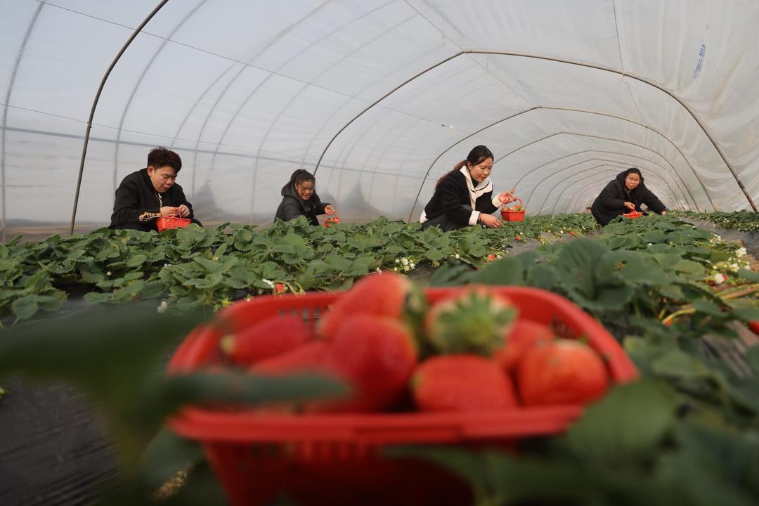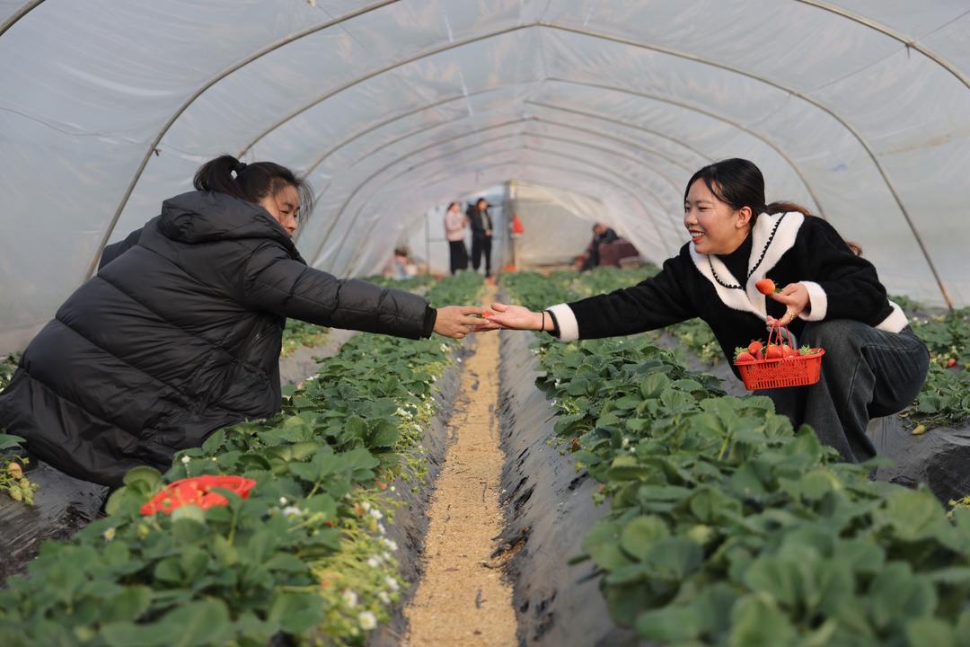 2024年12月25日,枣庄市峄城区一村庄大棚内,游客正在大棚里采摘草莓。据了解,该采摘大棚推出线上预订与线下采摘相结合的销售模式,不少市民前来体验采摘乐趣,感受田园风光的同时,品尝新鲜草莓的美味。(记者 孟令洋 通讯员 孙慧)