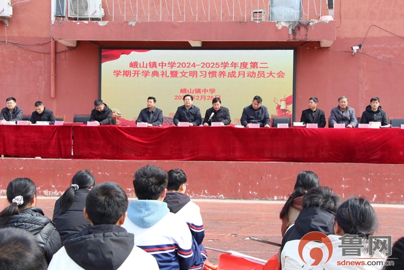 2月25日,枣庄市峄城区峨山镇中学举行开学典礼暨文明习惯养成月动员大会,全校师生满怀憧憬迎接新学期。