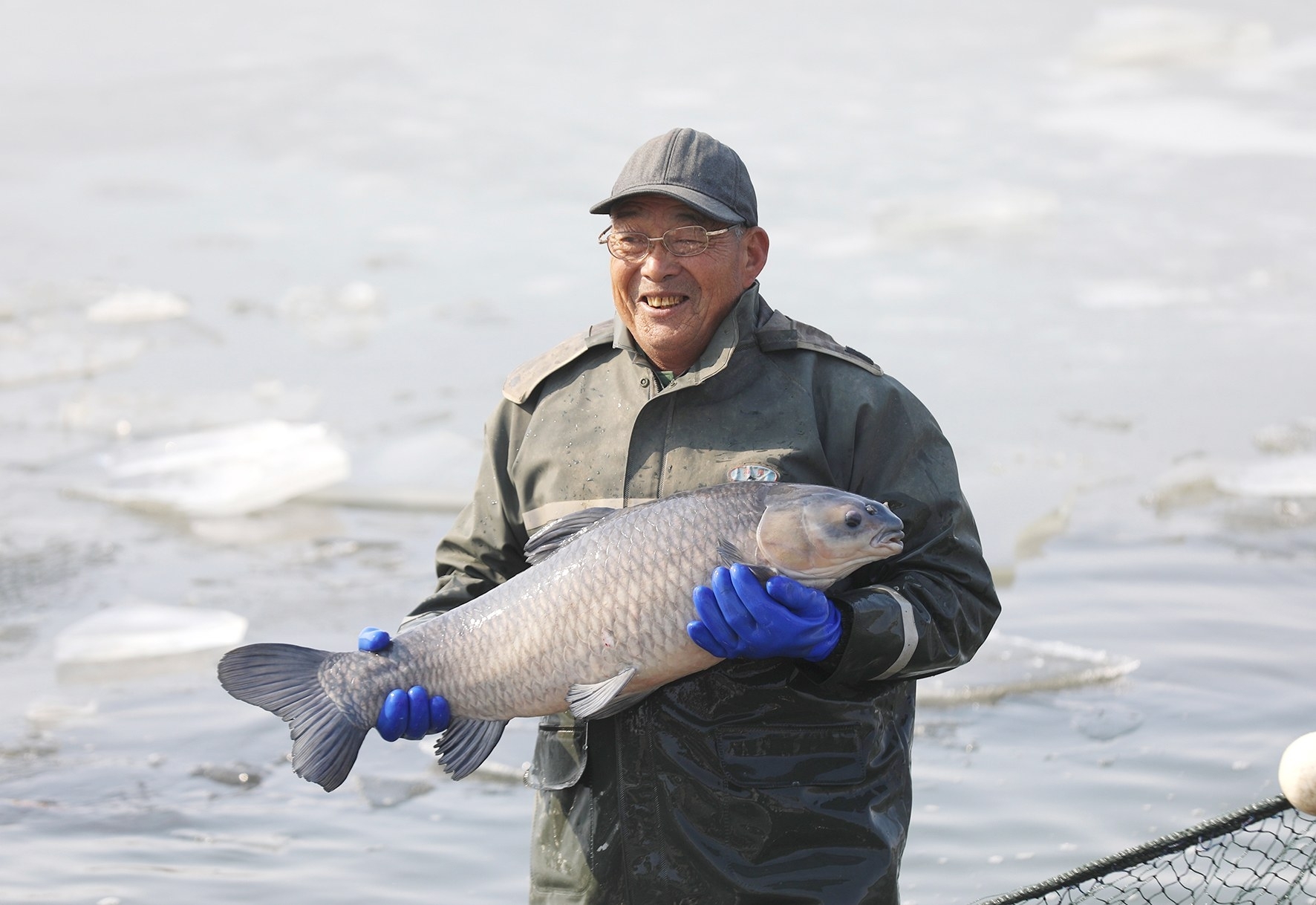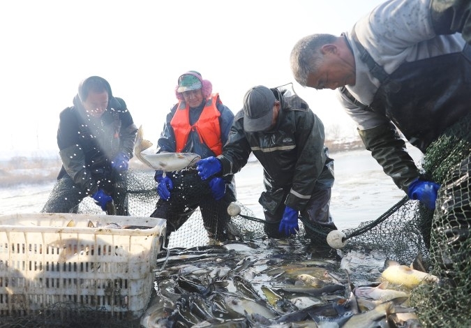 深冬时节,峄城区渔民正在破冰、拉网,捕获的鲜鱼经过分拣后,迅速发往徐州、济南、北京等地春节市场。近年来,该区利用治理后的塌陷水面,采用“以鱼净水、以水养鱼”的生态养殖模式,实现了生态与经济效益的双丰收。