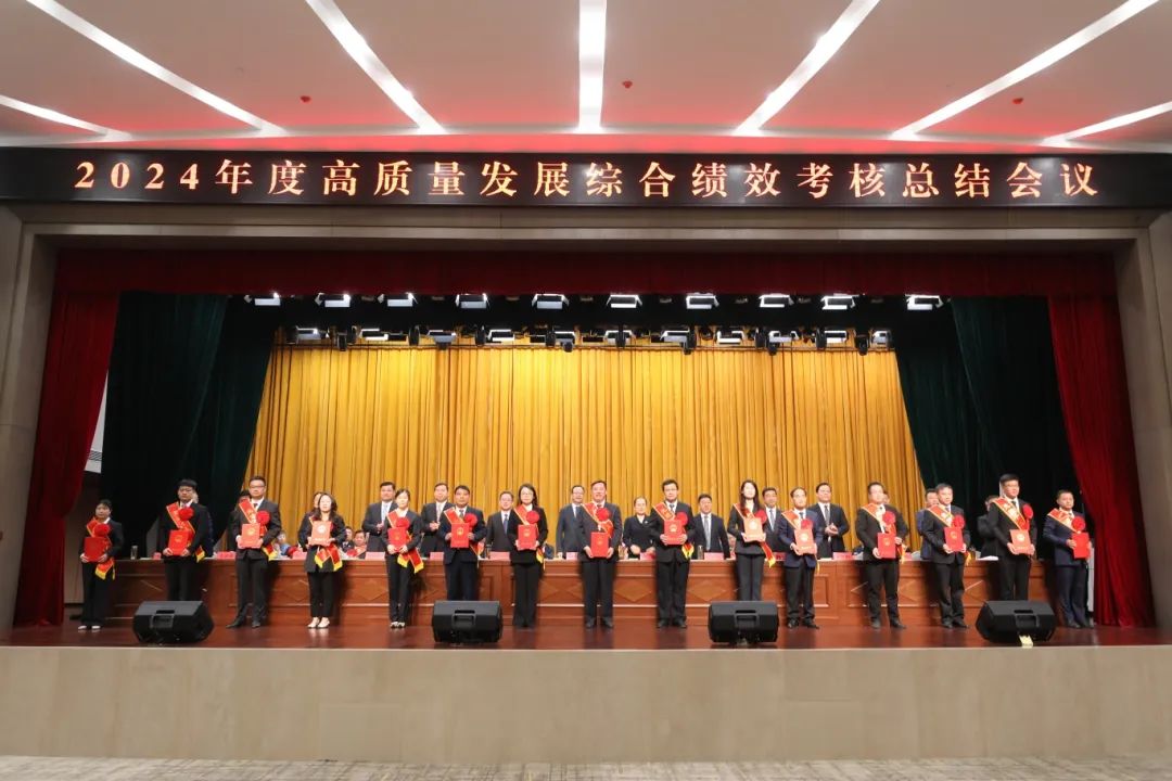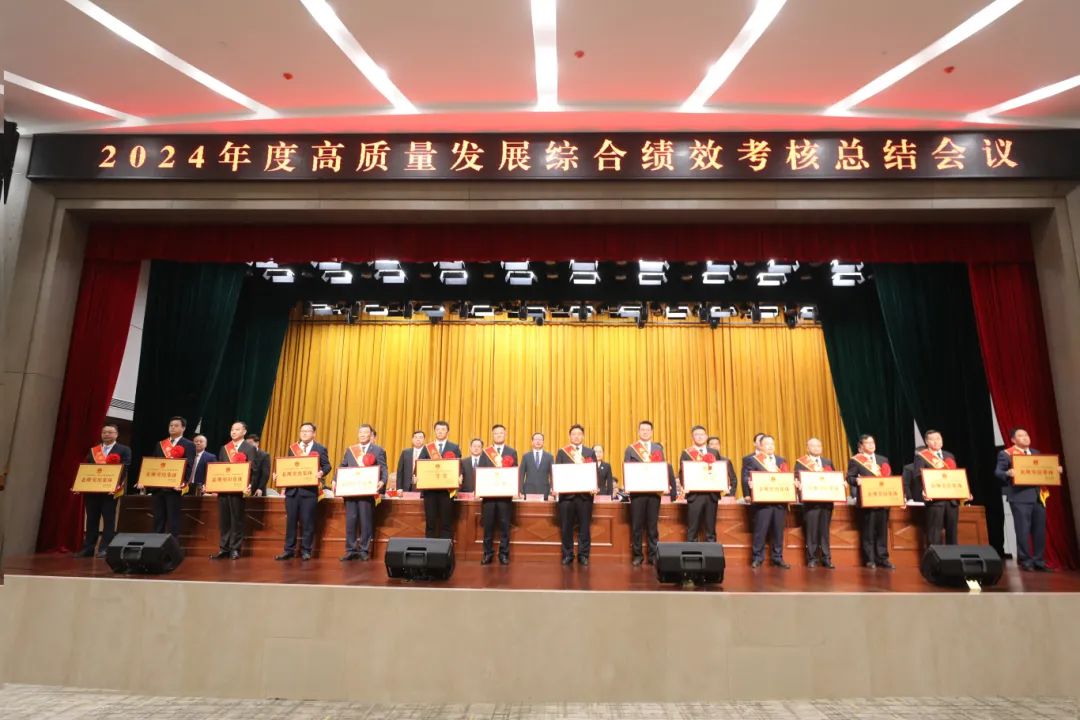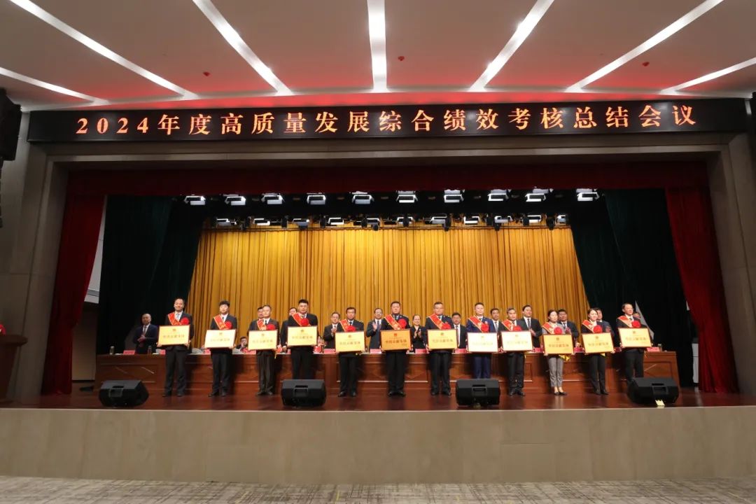 会议对2024年度全区经济社会高质量发展工作中作出突出贡献的企业和企业家、高质量发展综合绩效考核表现突出集体和个人通报表扬;与会领导为受表扬的代表颁奖;坛山街道、区委办公室、山东丰源集团股份有限公司负责同志分别作了典型发言。