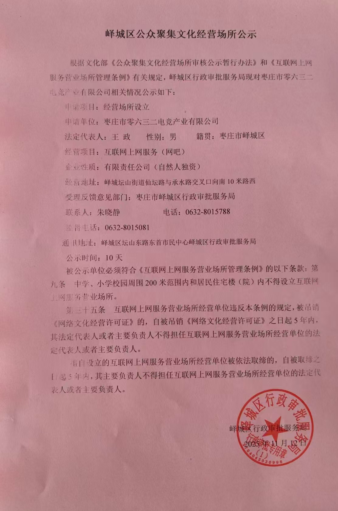 峄城区行政审批服务局关于公众聚集文化经营场所公示