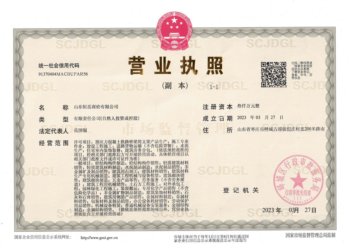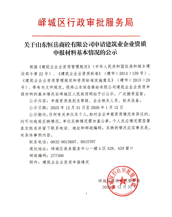关于山东恒岳商砼有限公司申请建筑业企业资质 申报材料基本情况的公示