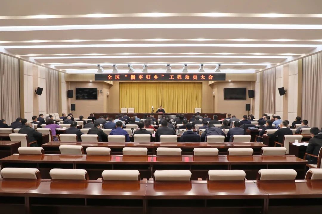 12月19日,在收听收看全市“榴枣归乡”工程动员大会后,区委书记张熙滨主持召开全区“榴枣归乡”工程动员大会。区委副书记、区长姜妍,区人大常委会主任徐刚,区政协主席高裕文,区委常委吕济禹、陈倩、袁伟、李天正、巩固出席会议。各镇(街)党(工)委书记、镇长(主任),区直有关单位主要负责人参加。