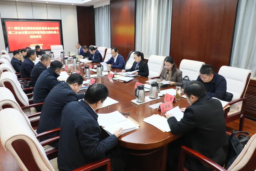 12月20日,十一届区委全面依法治区委员会2023年第二次会议暨2023年度党政主要负责人述法会议在区委会议室召开。区委书记、全面依法治区委员会主任张熙滨主持会议并讲话。区委副书记、区长姜妍,区委副书记宋俊峰,区领导陈倩、袁伟、丁建、李天正、王其春、王次祥、杜东出席会议。
