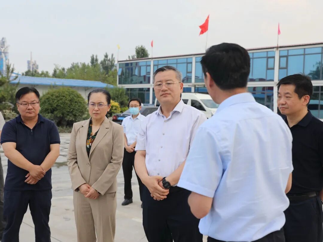 在兴运源建材科技有限公司,张龙江认真听取企业负责人关于生产工艺、产品质量及市场供需情况的汇报,详细了解企业生产经营、技术创新及安全生产管理等情况。