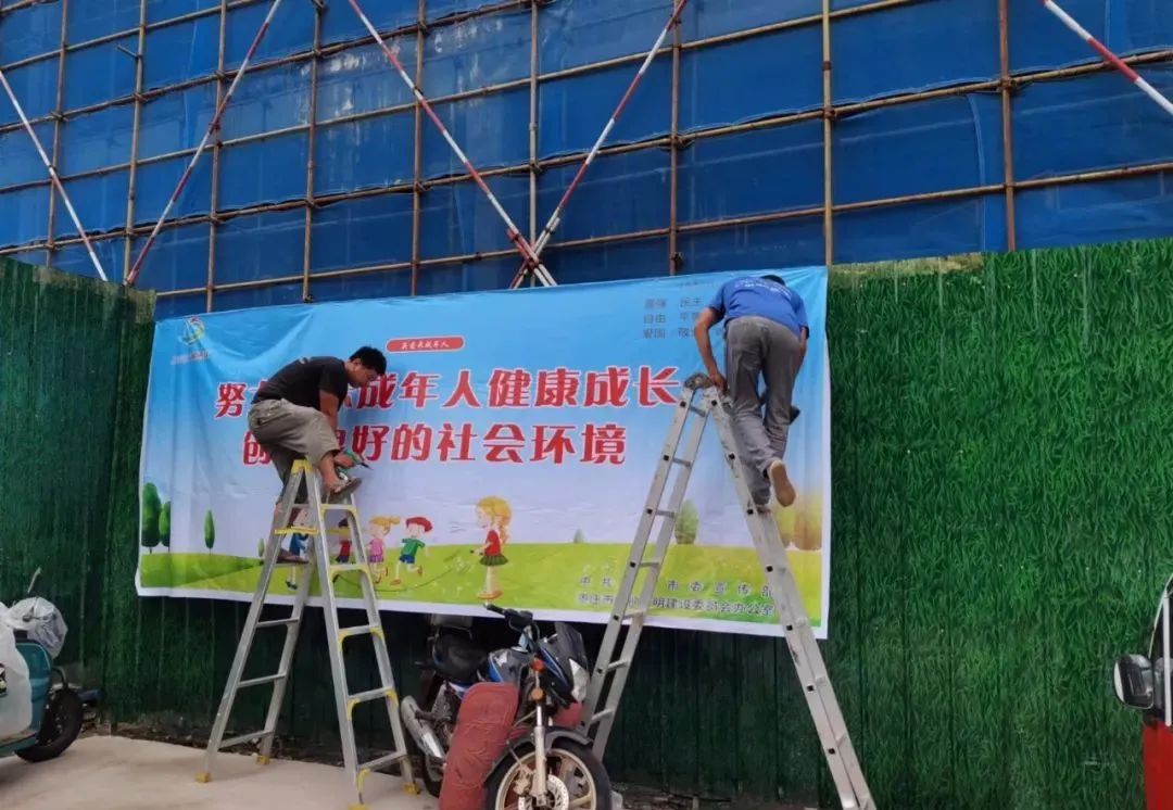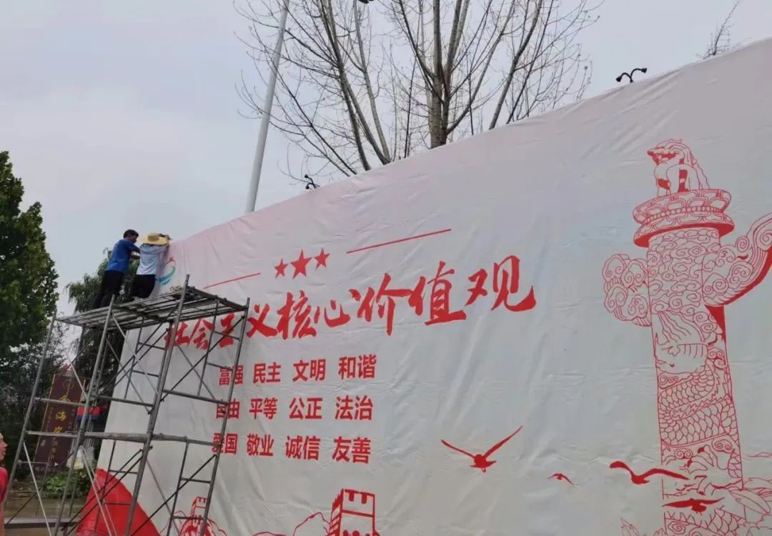 在新时代文明实践所(站)周边制作景观小品及公益广告,营造浓厚宣传氛围。