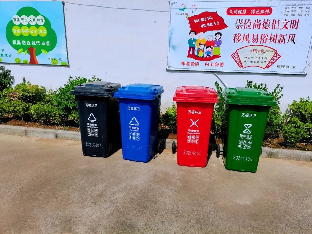 现场查看各村四色垃圾分类垃圾箱放置情况和创城宣传氛围牌配备情况,要求各村切实用好垃圾分类箱,做好日常保洁,提升村内环境。