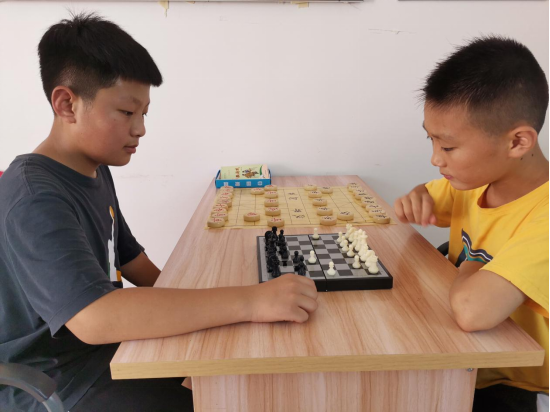 志愿者在村文体活动室指导孩子下棋、看书,培养兴趣爱好,树立良好村风民风,助力文明城市创建。