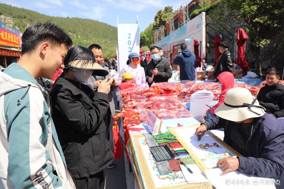 当然,庙会不止娱乐,400年之久的历史也让她成为一个小型文化展。细腻典雅的錾刻、方寸间见乾坤的葫芦画、憨态可掬的面塑,还有石榴根雕、传统布艺……文化之味既“悦目”又“赏心”。