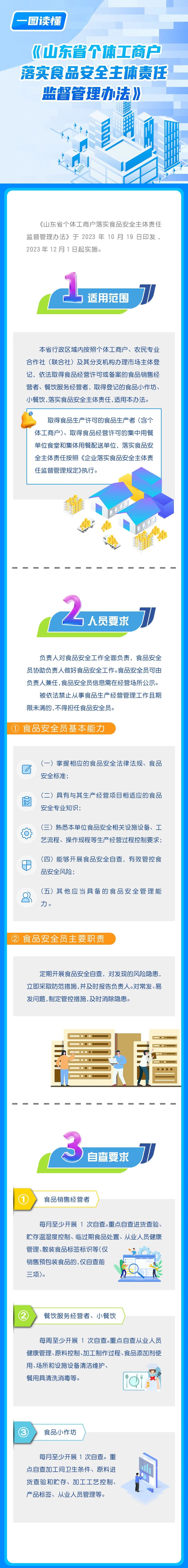 近日,山东省市场监督管理局印发《山东省个体工商户落实食品安全主体责任监督管理办法》(以下简称《办法》),以规范性文件形式,明确了从事食品生产经营的个体工商户、农民专业合作社(联合社)主体责任落实要求。