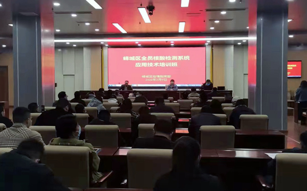 为确保启动全员核酸检测工作时做到有序、快捷,2022年2月9日,在峄城区新冠肺炎疫情应急处置指挥部举办了全区全员核酸检测系统应用技术培训班。