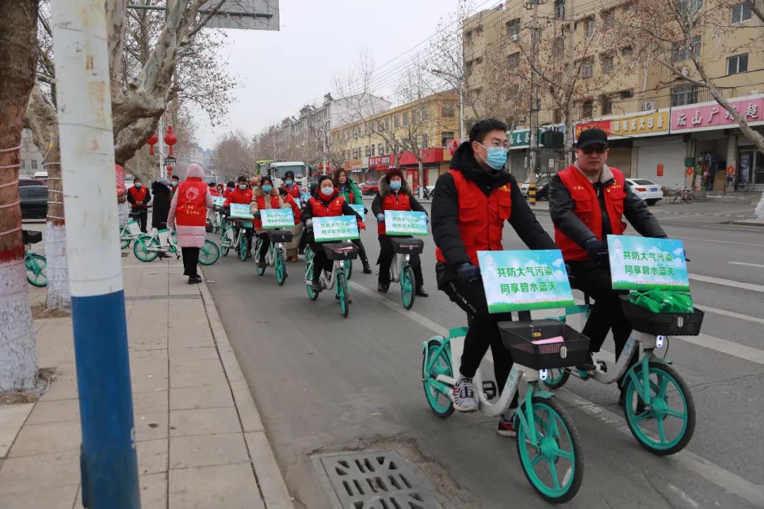 活动中,由义工协会志愿者们组成的骑行队伍,从仙坛苑广场出发,途经宏学路、承水路、承河路、沿河西路、解放南路,最后回到本次活动的出发地仙坛苑广场。天气虽冷,但骑行队员的热情却很高涨,一路上大家欢声笑语,秩序井然。骑行过程中,他们还不时停下来通过走街串户,进商场、进市场发放宣传彩页,与市民交谈,向他们宣传冬春大气污染防治相关知识,呼吁全民减少空气污染,共建绿色家园,并鼓励更多的市民加入到他们的行动中。