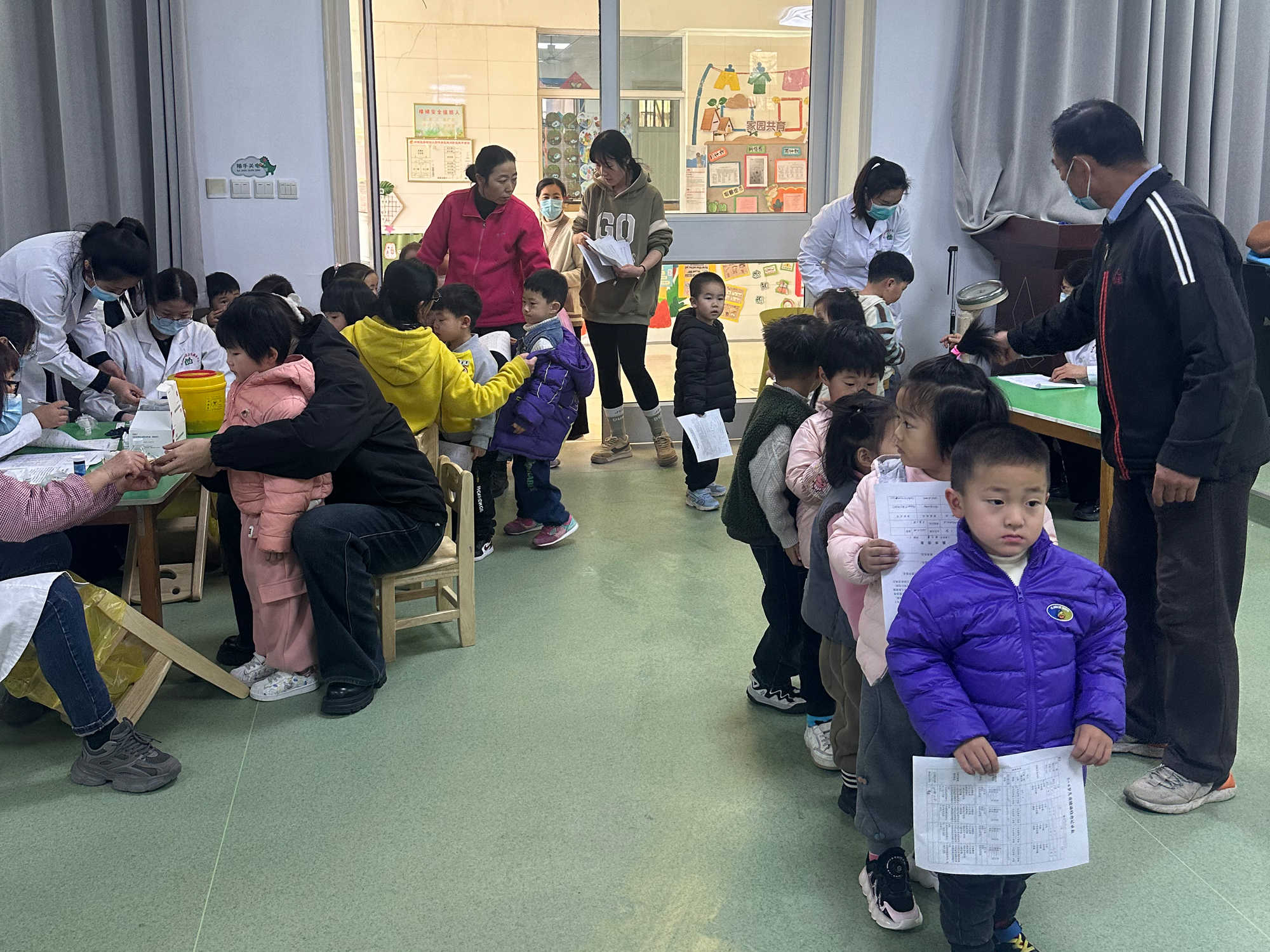 此次体检的项目包括身高、体重、视力、心肺功能、血红蛋白检测等多个项目。体检现场,医务人员对每个孩子进行了认真细致地检查,对检查的结果作了详细记录。老师们用鼓励、表扬的方式给予孩子们心理疏导,体检现场秩序井然。