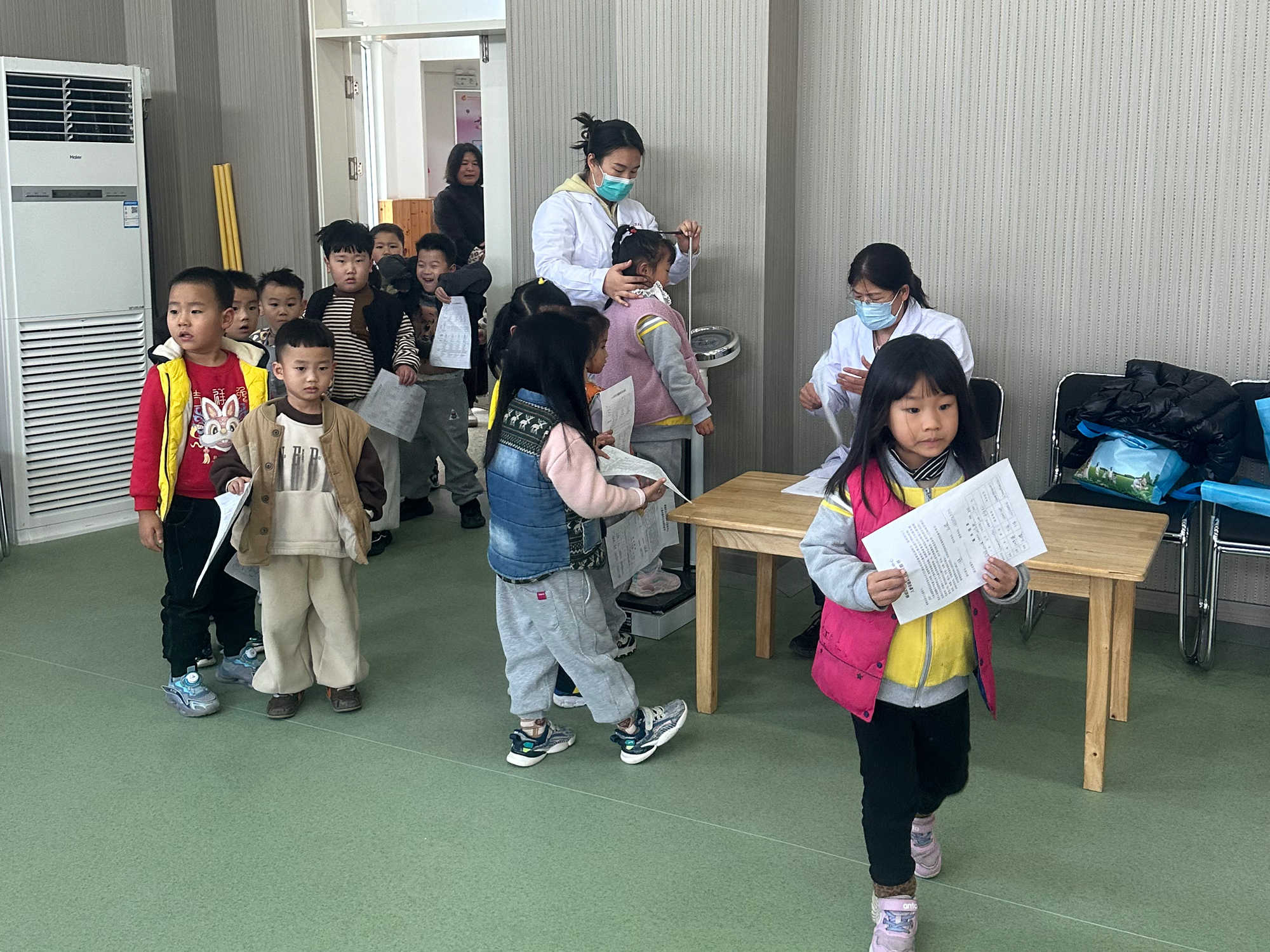为更好地了解幼儿生长发育状况,保障幼儿健康成长,近日,峄城区坛山街道社区卫生服务中心医务人员走进辖区5家幼儿园,为1050名小朋友们进行了健康体检。