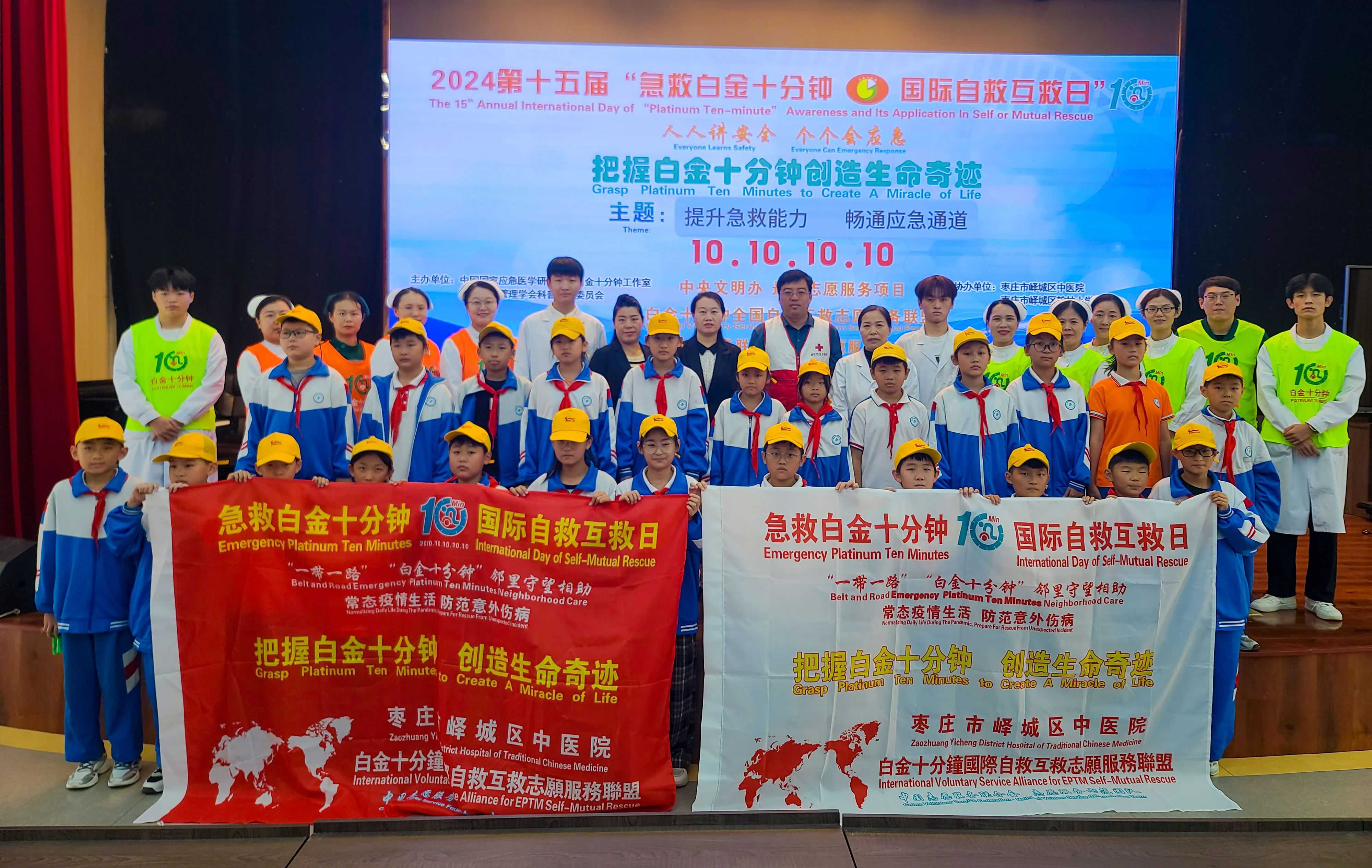 近日,峄城区中医院联合翰林小学共同举办2024年第十五届“急救白金十分钟 全国自救互救日”公益活动。