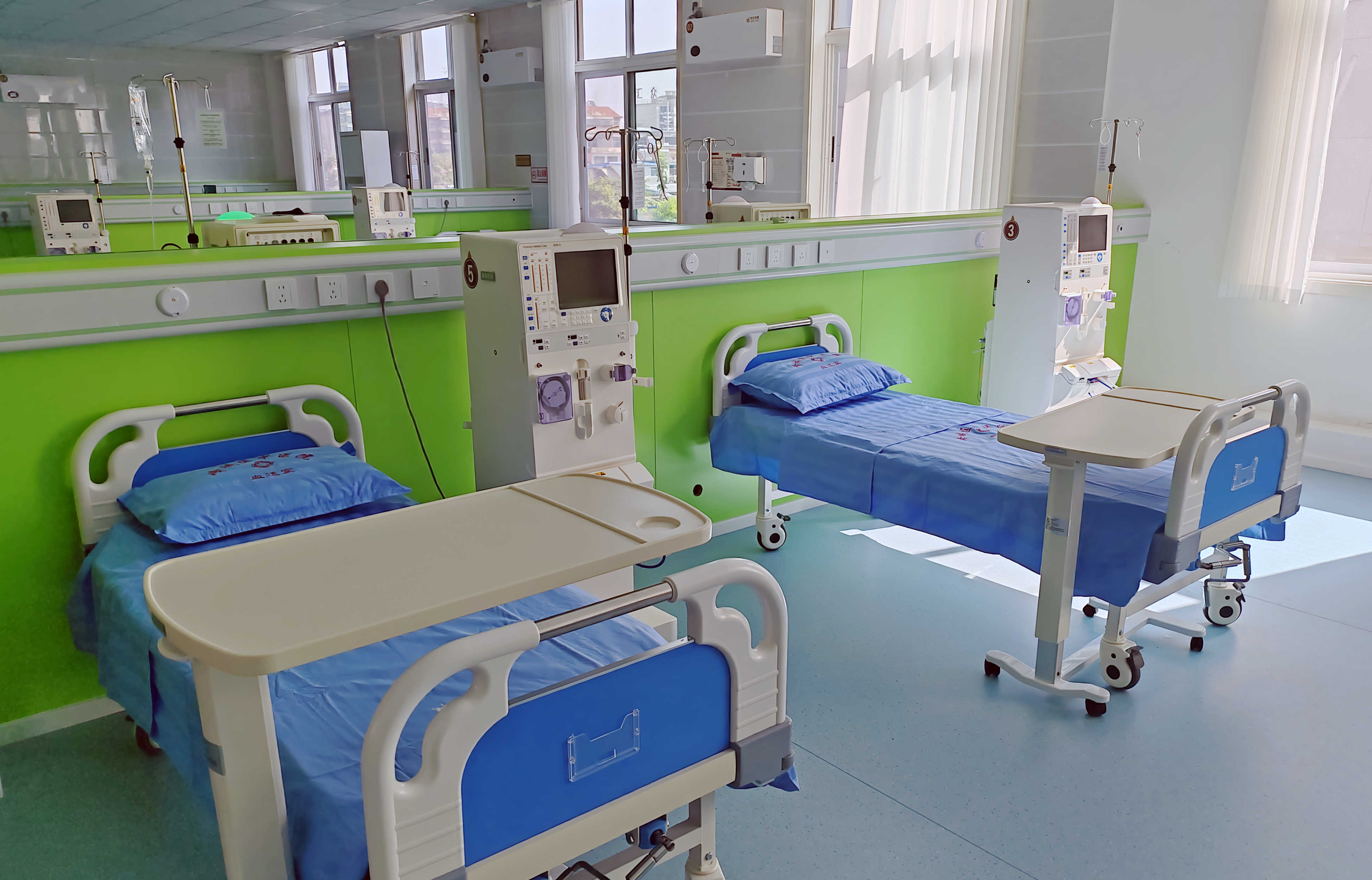硬件与人员配置上,中心引进9台德国费森尤斯血液透析机、1台血滤机(均含KT/V在线监测)及先进水处理系统,保障透析质量;配备9名持证医护人员,临床经验丰富;此外,多功能监护仪、中心供氧、负压吸引、除颤仪等抢救设备一应俱全,为患者治疗全程筑牢安全防线。