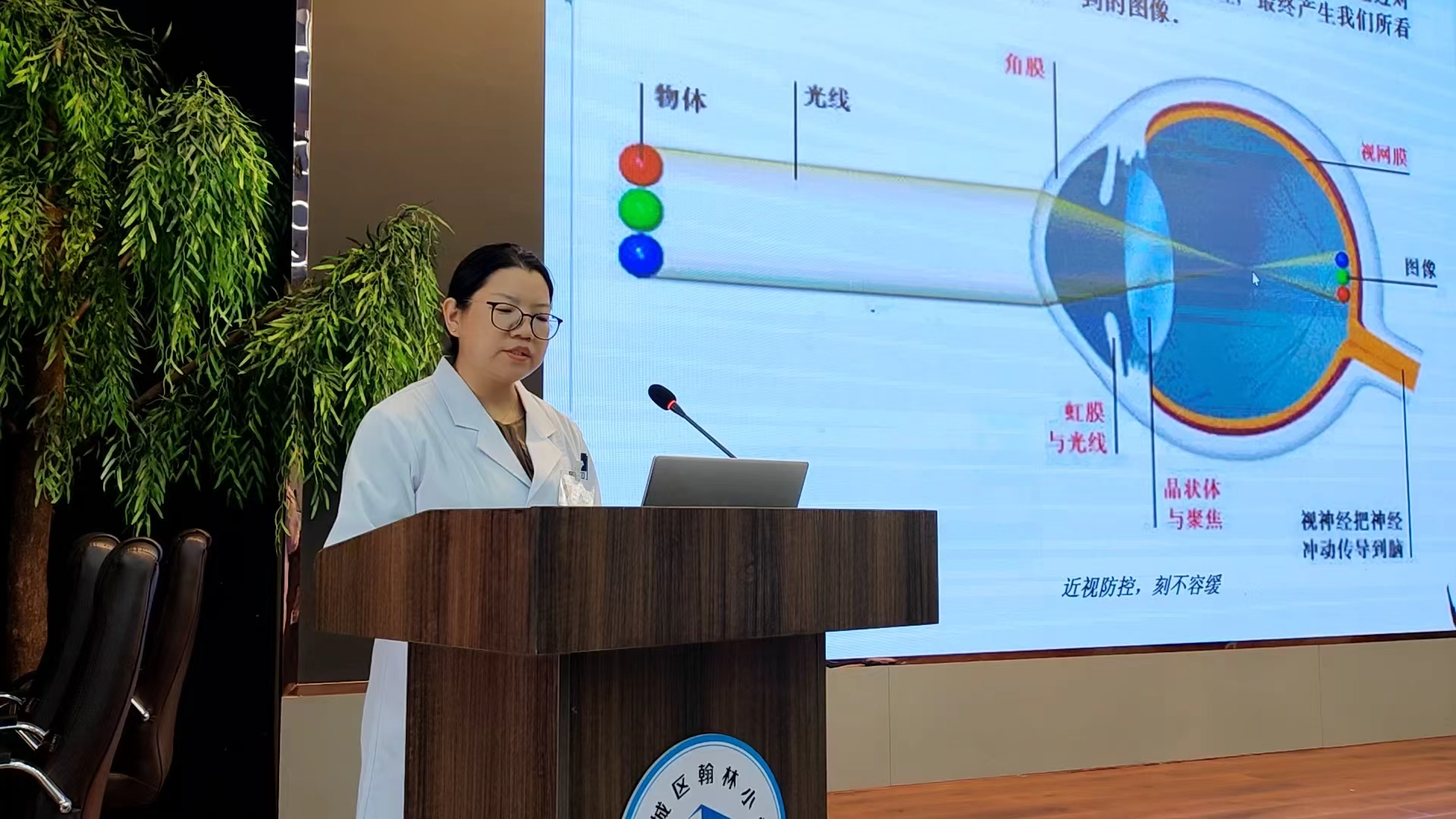 最后,中医门诊综合治疗室王艳主任从中医视角出发,分析近视成因,分享正确读写姿势、户外活动、眼部放松及饮食调理等护眼妙招,引导学生养成爱眼习惯。