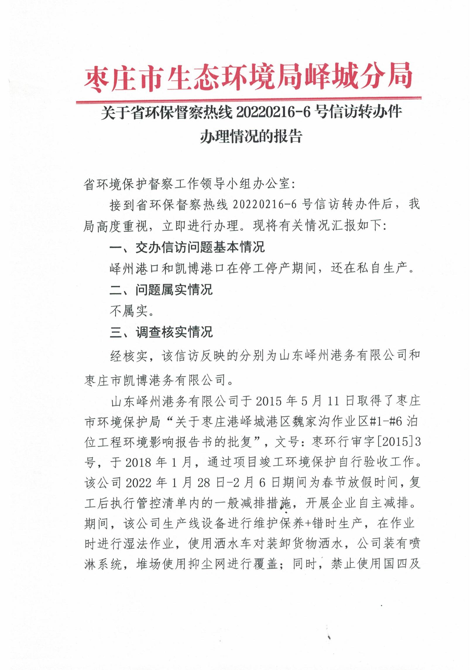 关于省环保督查热线转办件20220216-6号信访的回复