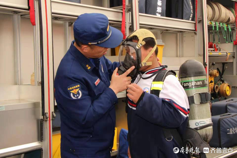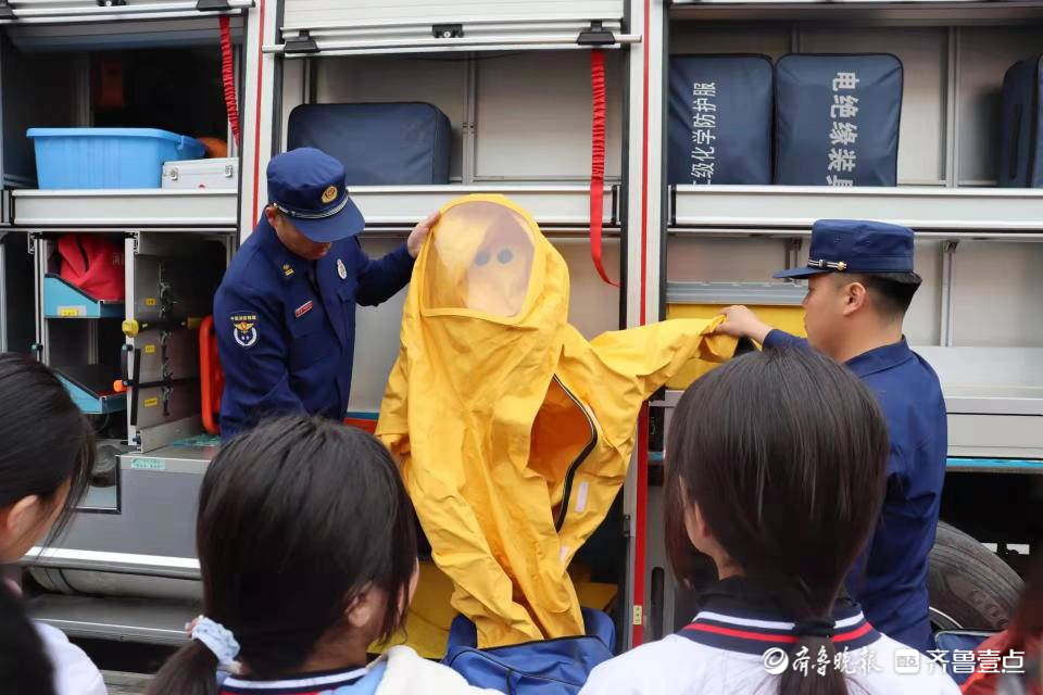 首先,救援大队为学生普及消防安全知识。大队宣传员通过学校火灾案例向师生们分析了校园火灾的危险性,就火灾预防措施、初期火灾的扑救方法、火场逃生自救技能、灭火器的正确使用方法以及火灾报警方法做出了详细的讲解。随后,大队宣传员组织全体师生参与灭火逃生演练、参观了灭火救援装备器材,使全体师生“零距离”接触消防器具。最后,学生拿起灭火器、穿上消防服、戴上防护面具、握住消防水龙头亲自体验了一把消防队员的日常工作。