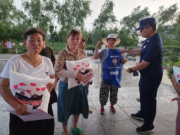 在村民活动广场,大队宣传人员利用电影放映前的时间,面对面向村民传授“防火经”,结合农村火灾事故的特点,对如何正确用火、用电、用气,如何进行初起火灾扑救等内容进行了全面细致的讲解,并现场示范灭火器的使用方法,同时采用“你答题,我送礼”的方式,为村民发放了消防小礼品。