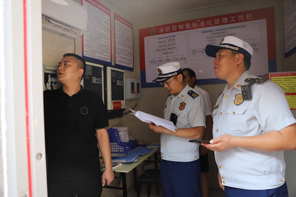检查中,大队主官认真对各场所的消防安全管理制度是否落实、安全出口和疏散通道是否保持畅通、消防安全标识和警示语是否张贴到位、疏散指示标志及应急照明灯是否保持完好有效、消防控制室值班人员是否在岗在位且取得培训证件、灭火器和室内消火栓能否正常使用等情况进行了检查。