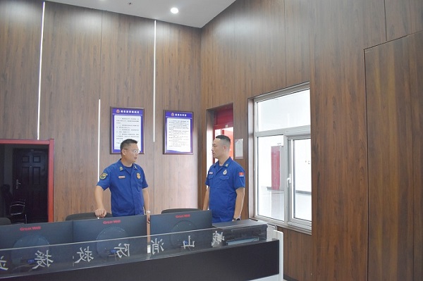 大队主官仔细检查了车辆器材库、通讯室、消防员宿舍等库室,了解了车辆器材维护保养、内务卫生保持、人员在岗在位等情况,听取了有关工作汇报。