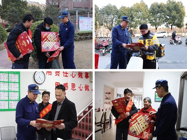 活动中,宣传人员针对冬春用电、用火特点,向群众讲解了家庭防火灭火常识,发放了《家庭消防安全知识手册》,送上对联礼包的同时也不忘提醒居民要重视家庭防火,节日期间走亲访友、离家前要做到三清三关,车辆停放切勿占用消防车通道。针对过年不放假仍在为民服务的小超市等场所,宣传员还帮助他们排查了存在的消防安全隐患,并送上了对联礼包和新春祝福。