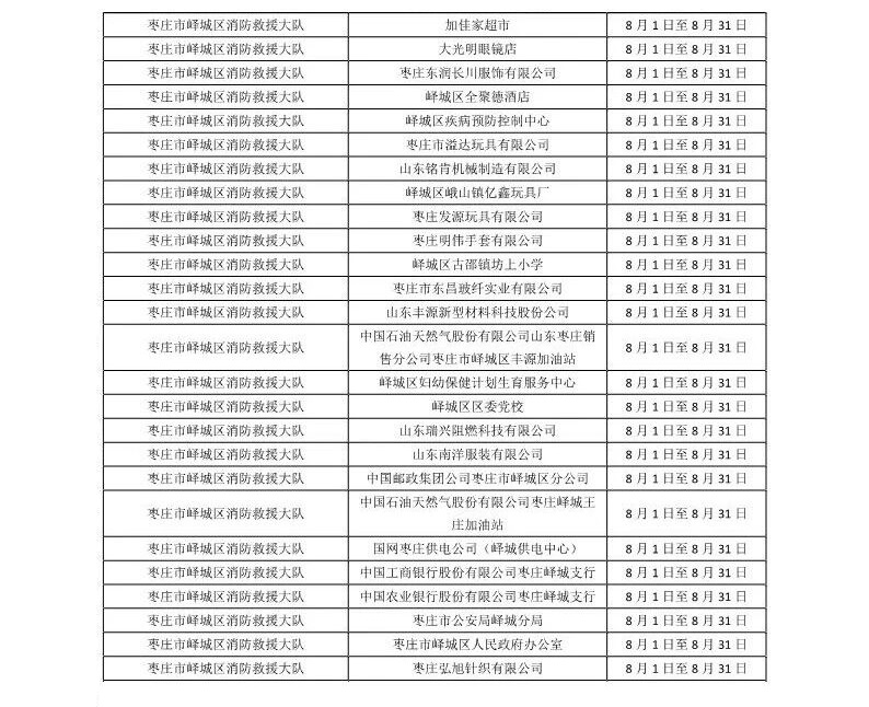 为确保全区火灾形势持续平稳,进一步加强事中事后监管机制,全面推行双随机、一公开消防监督管理模式,根据《中华人民共和国消防法》和应急管理部消防救援局《关于全面推行双随机、一公开消防监管工作的通知》,峄城区各级消防救援机构按照随机抽取被检查对象与随机抽取执法检查人员的方式,利用双随机、一公开监管系统,随机从社会单位库和执法人员库中抽取被检查对象与执法检查人员。现将全区八月份双随机、一公开消防监督抽查情况向社会公示,请各单位认真遵守消防法律法规,落实消防安全主体责任。