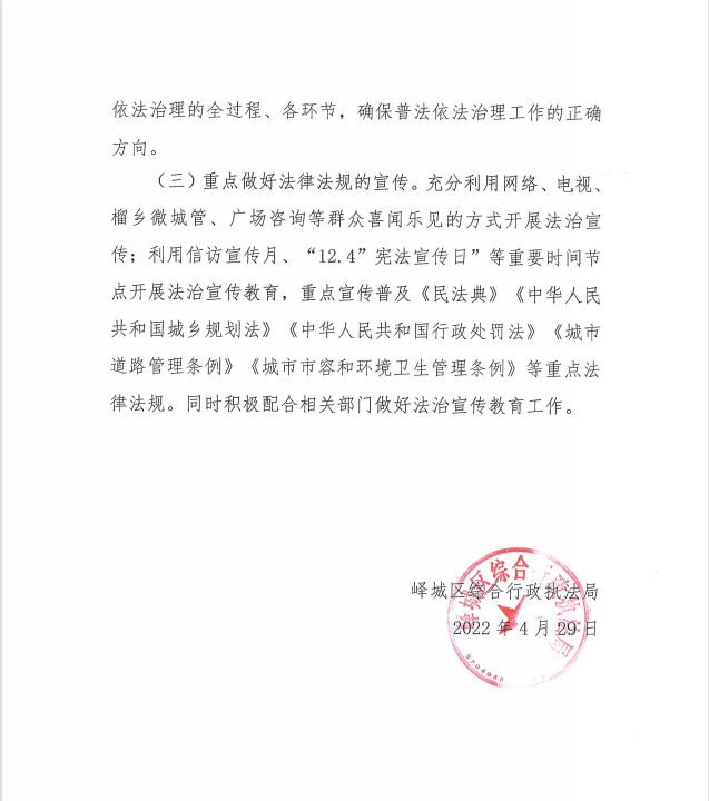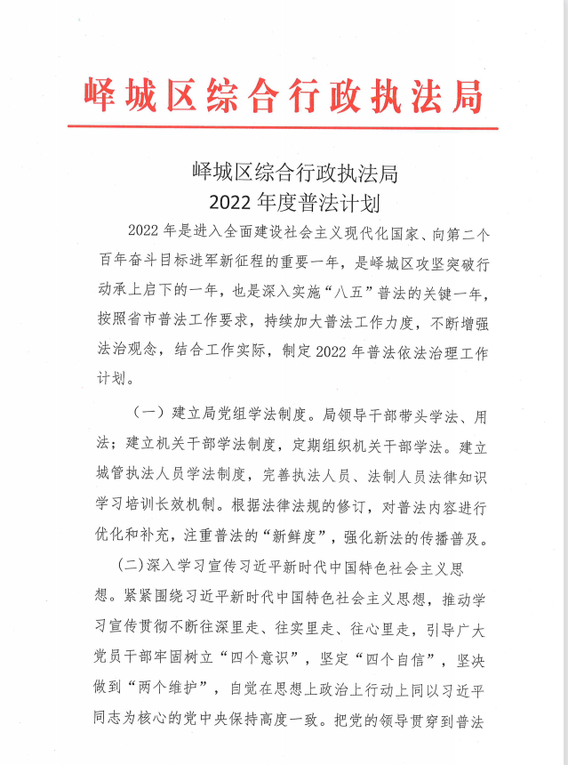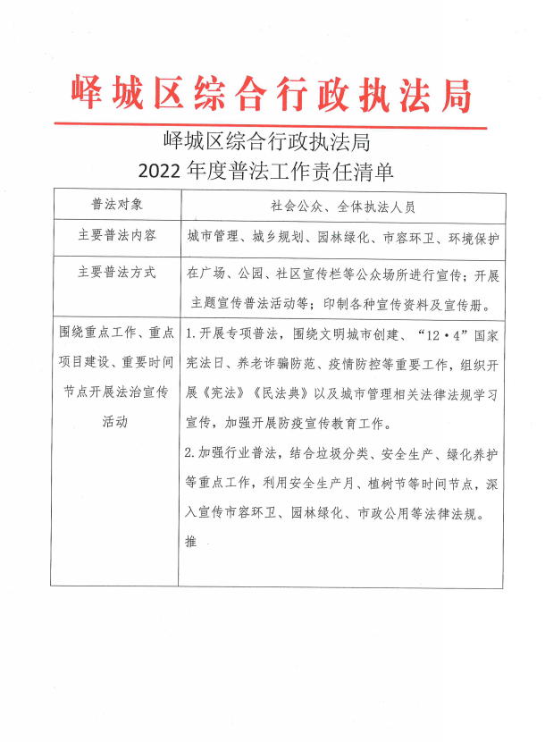 峄城区综合行政执法局2022年度普法计划和清单