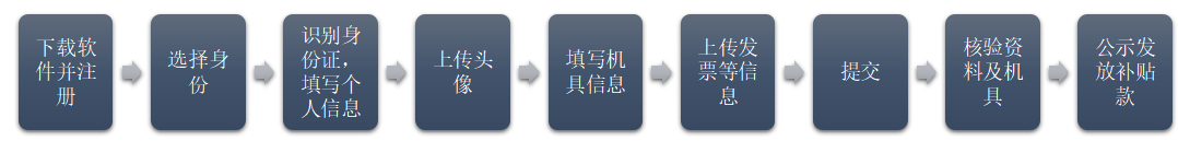 九、手机APP办理流程:全面推行手机APP报名申请,购机者在家即可办理补贴申请,具体操作流程如下