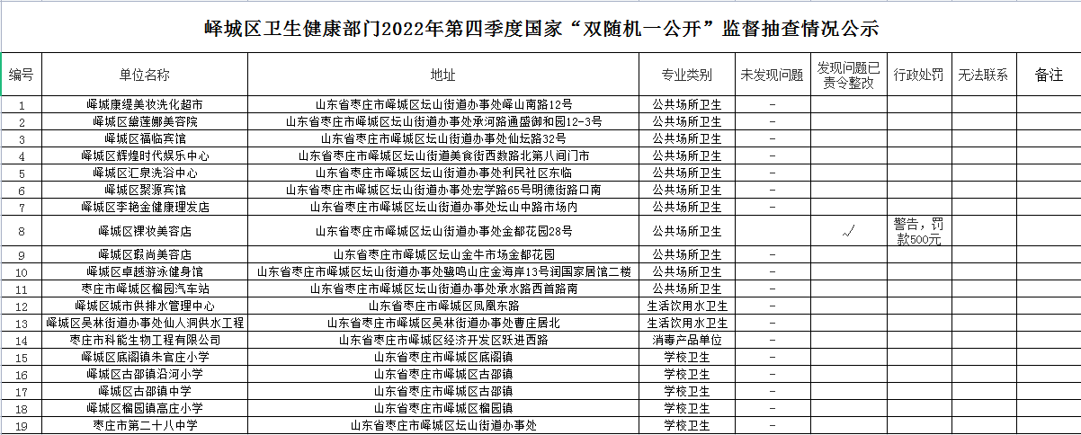 峄城区卫生健康局2022年第四季度“双随机一公开”检查情况