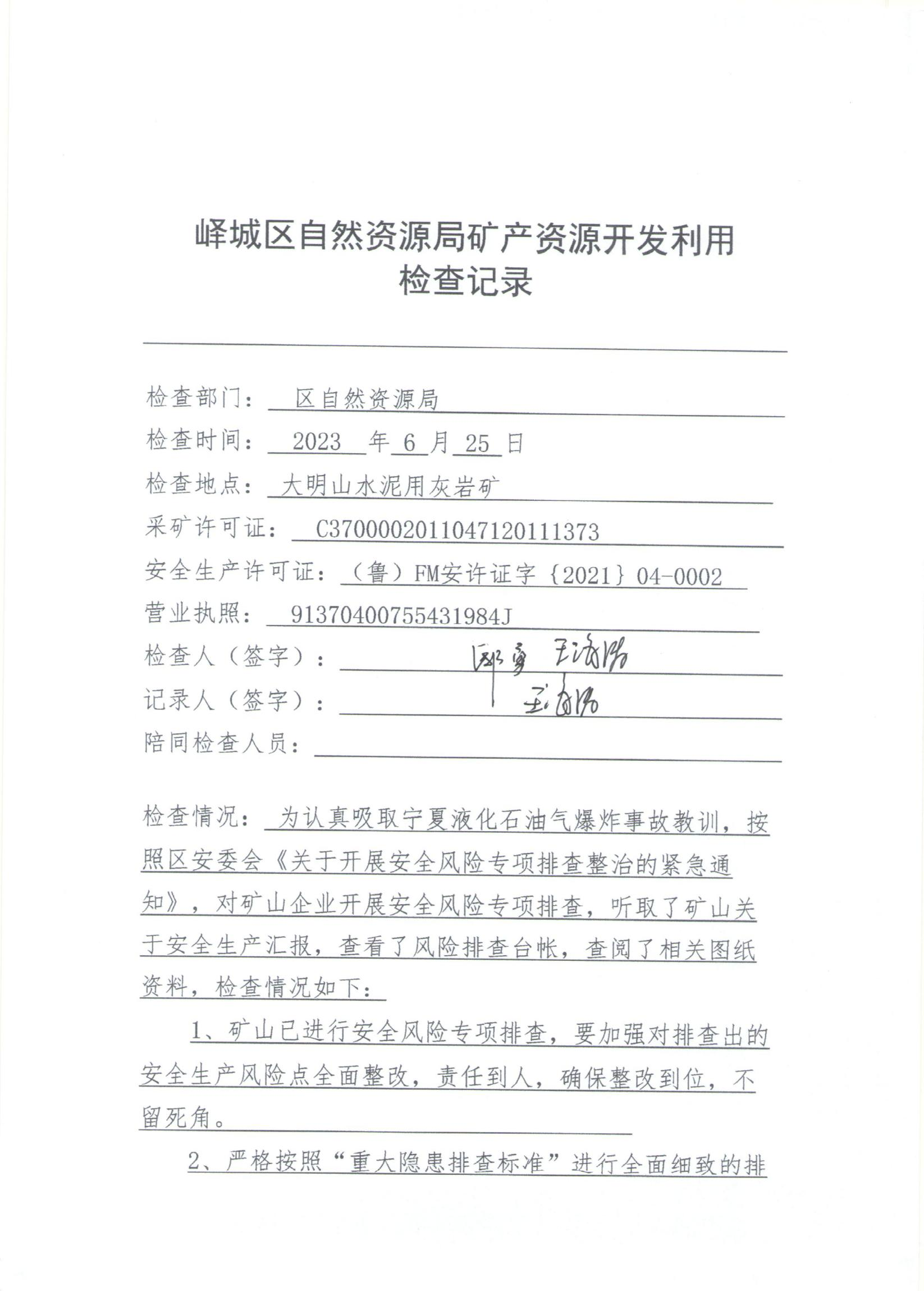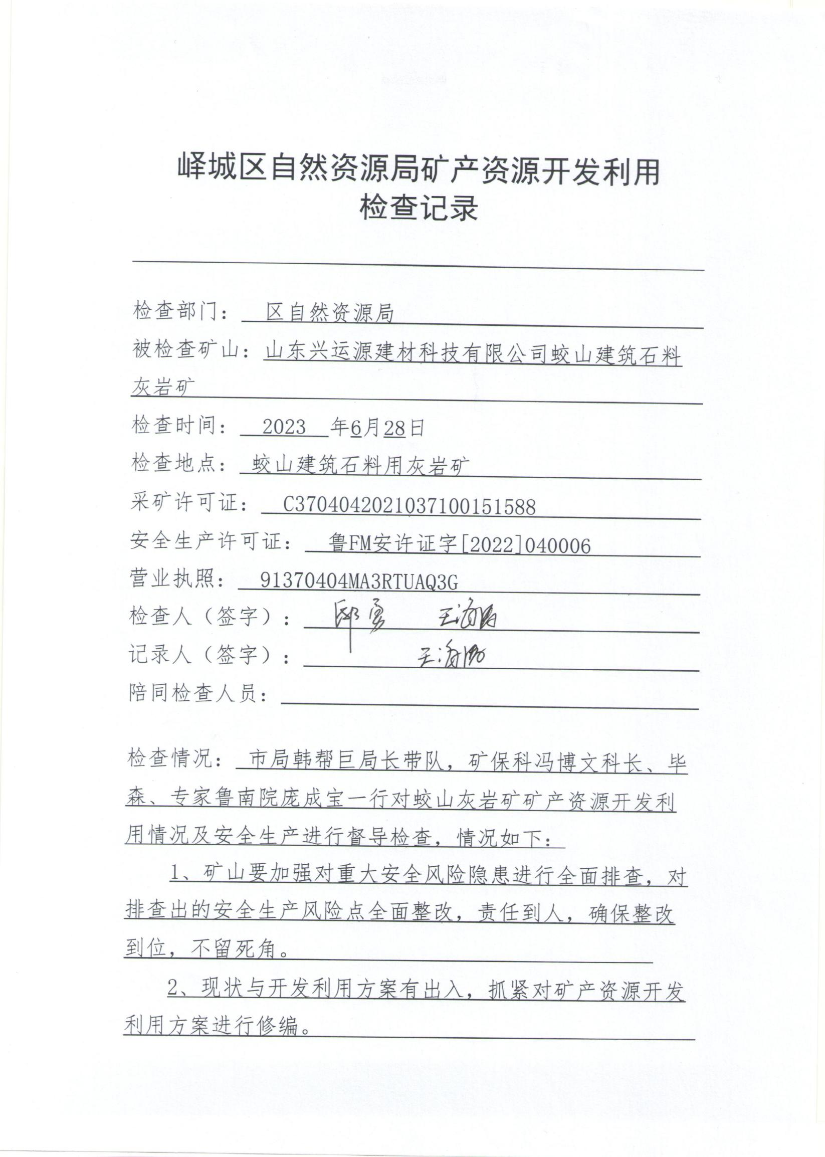 峄城区自然资源局2023年6月“双随机、一公开”检查信息