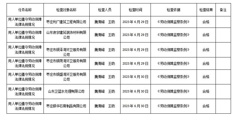 峄城区人社局2023年第二季度“双随机、一公开”检查情况