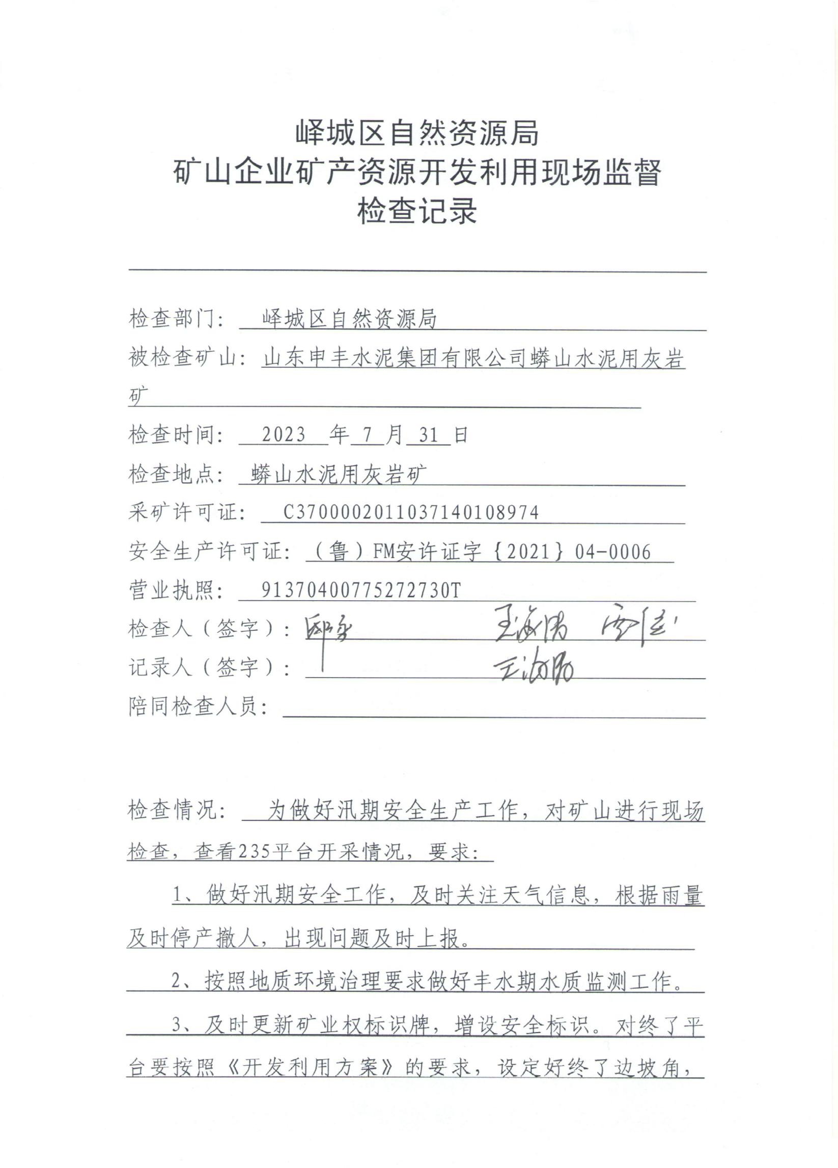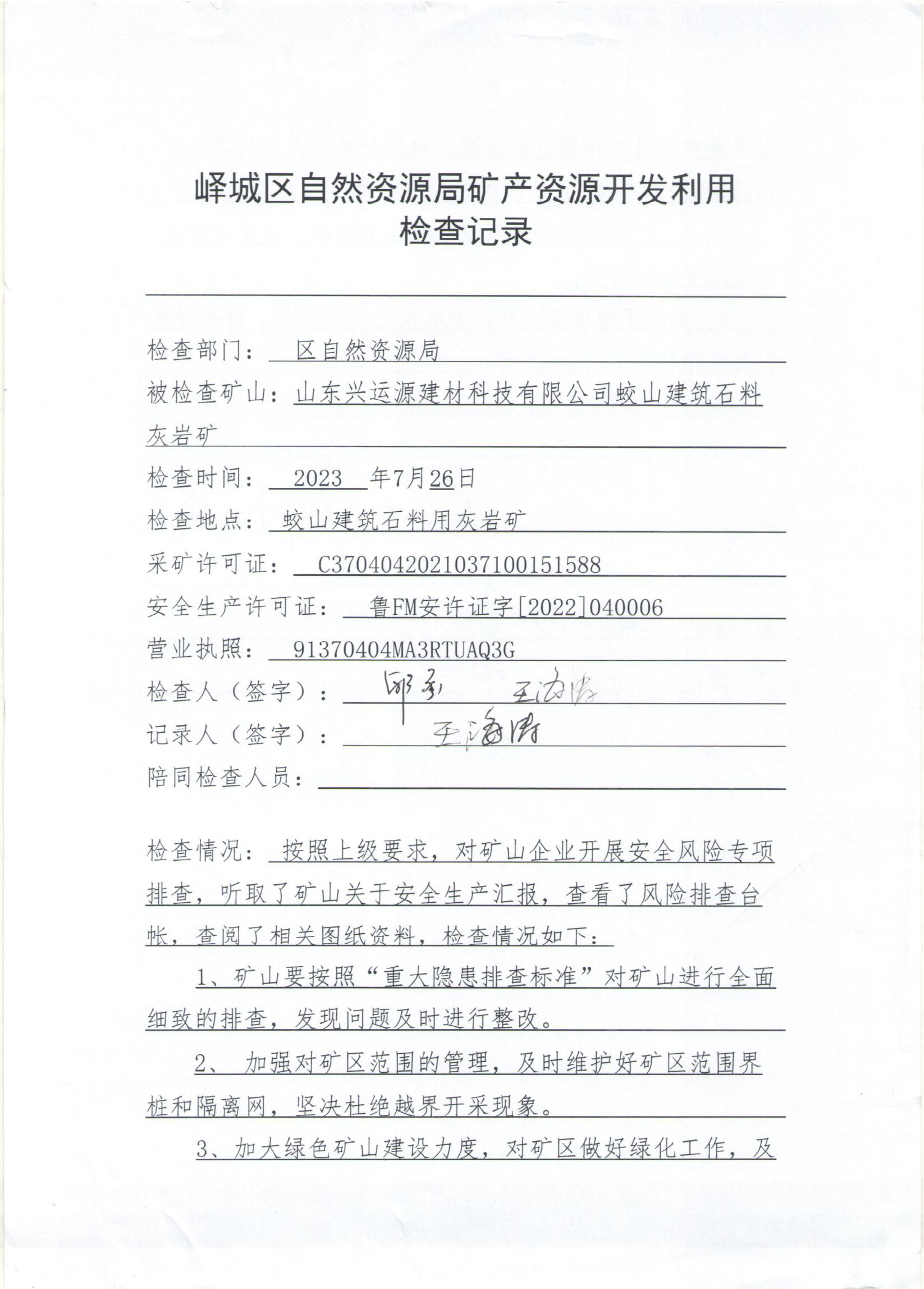 峄城区自然资源局2023年7月“双随机、一公开”检查信息